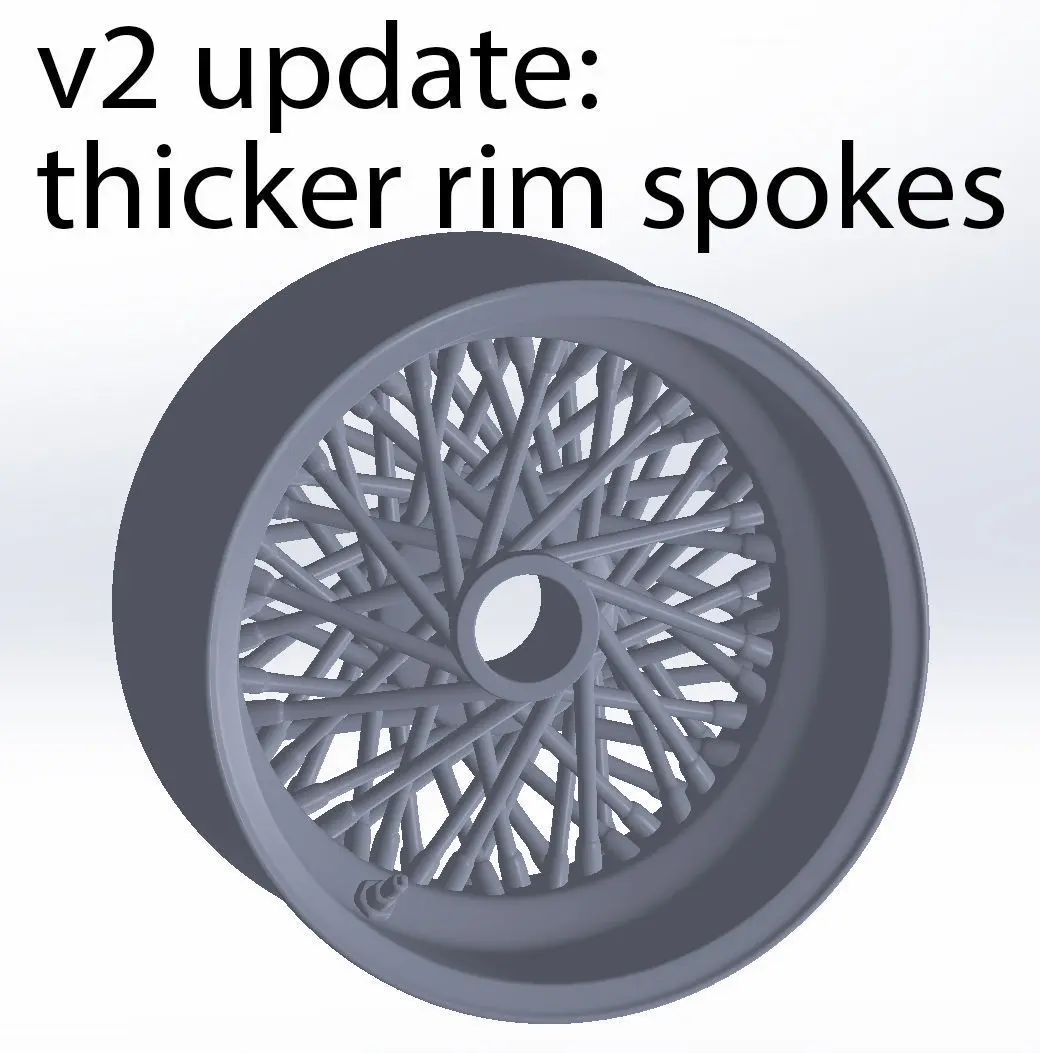 v2 update: Increased thickness on the rims spokes for smaller scale printing