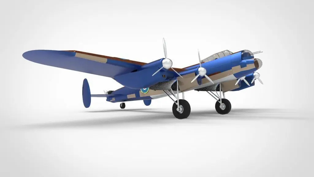 The 3D model of the Avro Lancaster meticulously recreates the iconic British heavy bomber, a cornerstone of the Royal Air Force's strategic bombing campaigns during World War II. This model features the Lancaster's characteristic four-engine layout, with detailed replicas of the Merlin engines that powered it through countless missions. The expansive wingspan, along with the distinctively tall tail fin, are accurately rendered, capturing the bomber's imposing presence. Inside, the model showcases the bomb bay, capable of carrying the massive payloads that made the Lancaster famous, including the bouncing bomb used in the Dambuster raids. This 3D representation provides a detailed and accurate depiction of an aircraft that was crucial in shaping the outcome of the war, making it a valuable piece for aviation enthusiasts and historians alike.