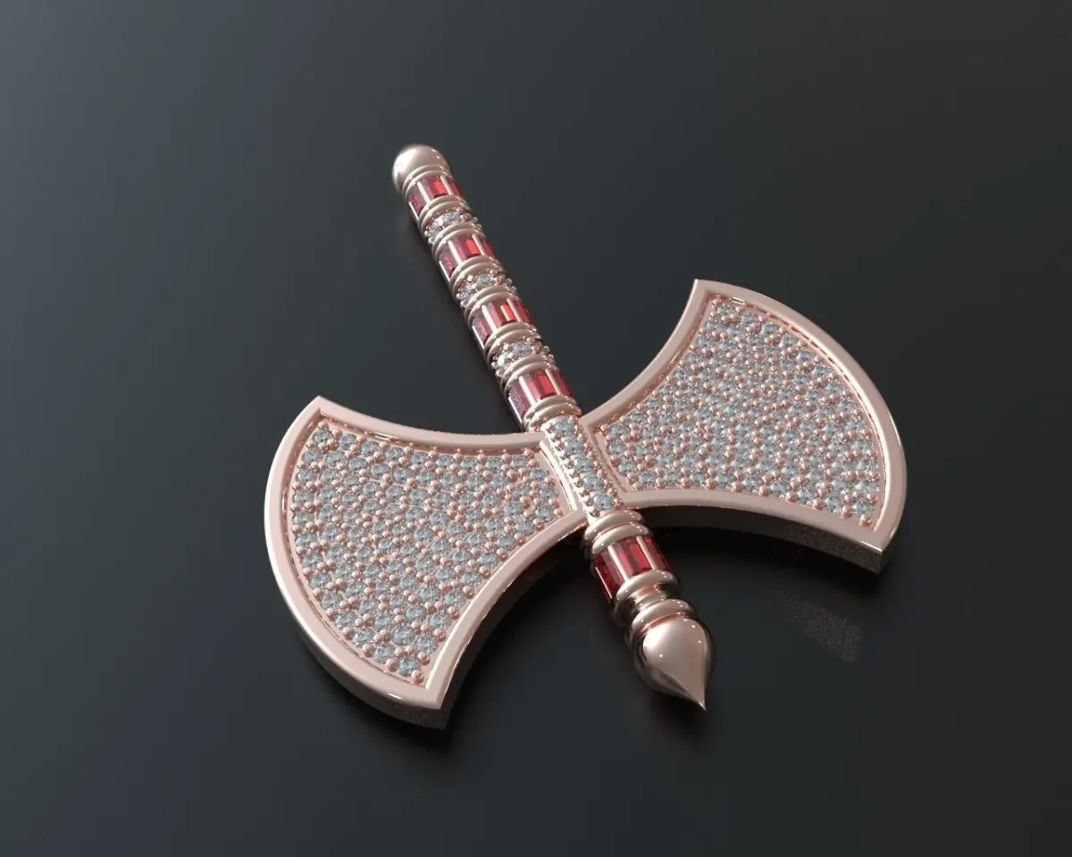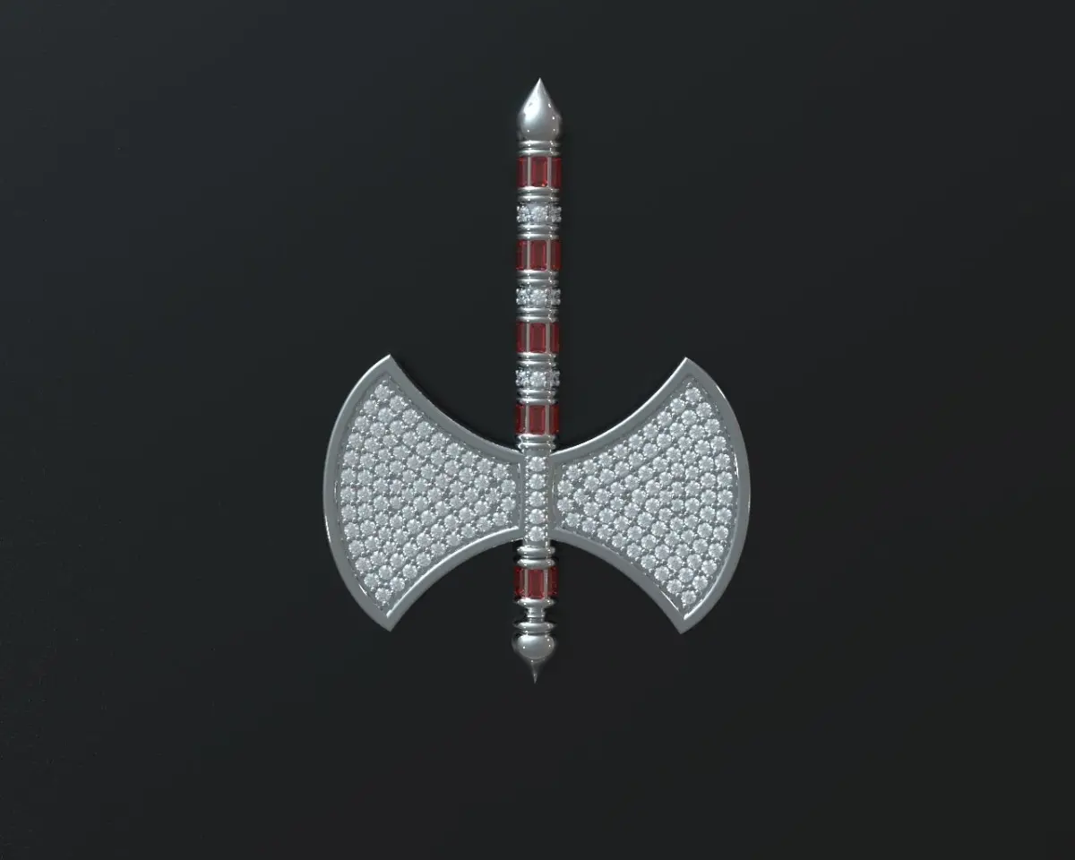 Presenting an exquisite 3D model of an intricately designed axe 3d model. This piece is a perfect blend of artistry and craftsmanship, ideal for jewelry designers, enthusiasts, and collectors.