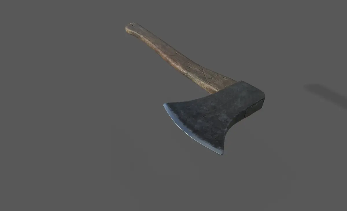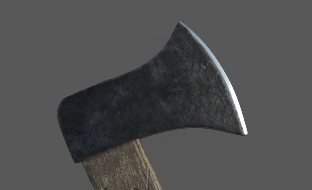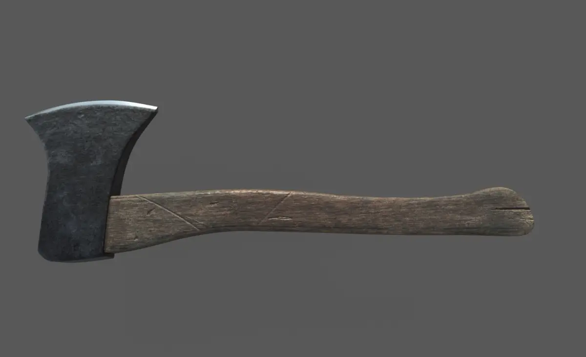 - The gray background of the image provides a neutral backdrop that highlights the natural beauty of the wooden axe.