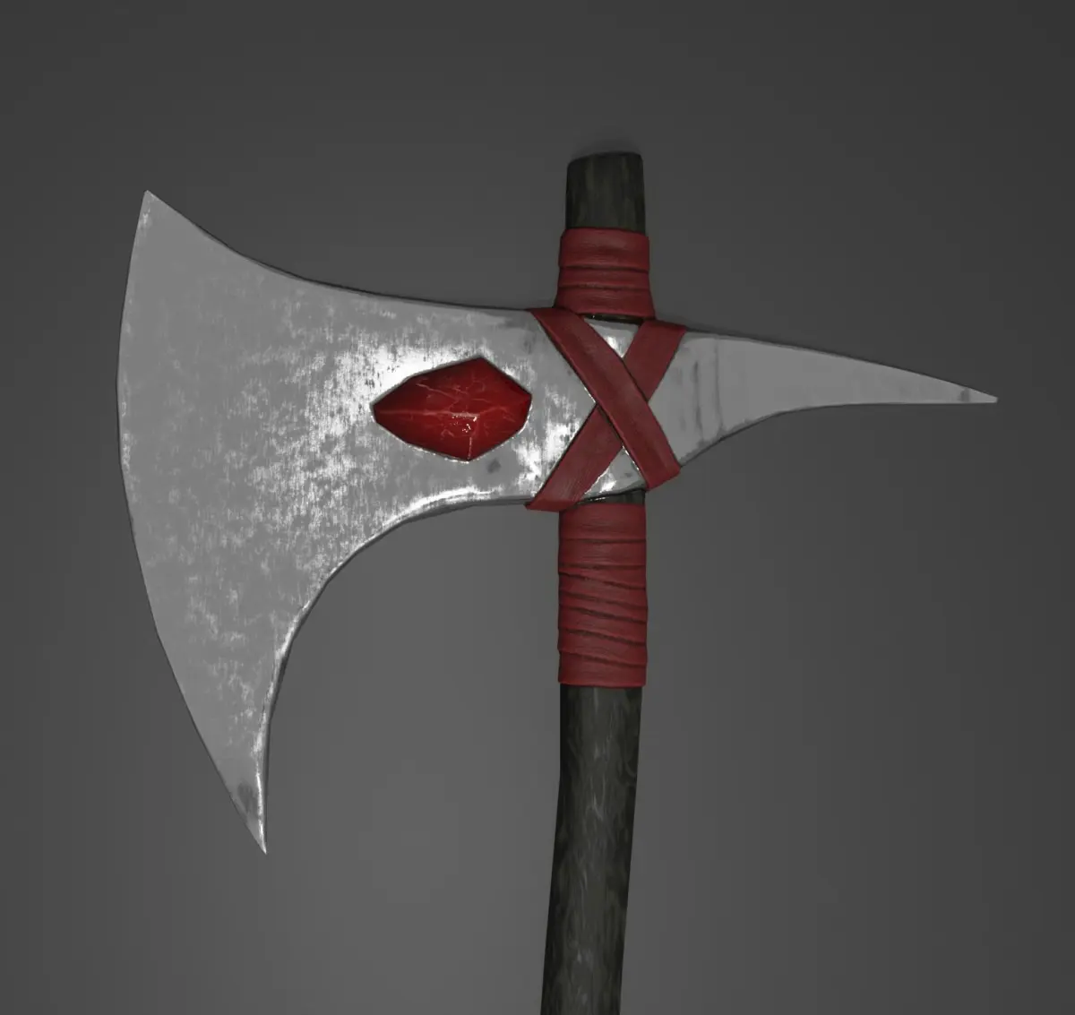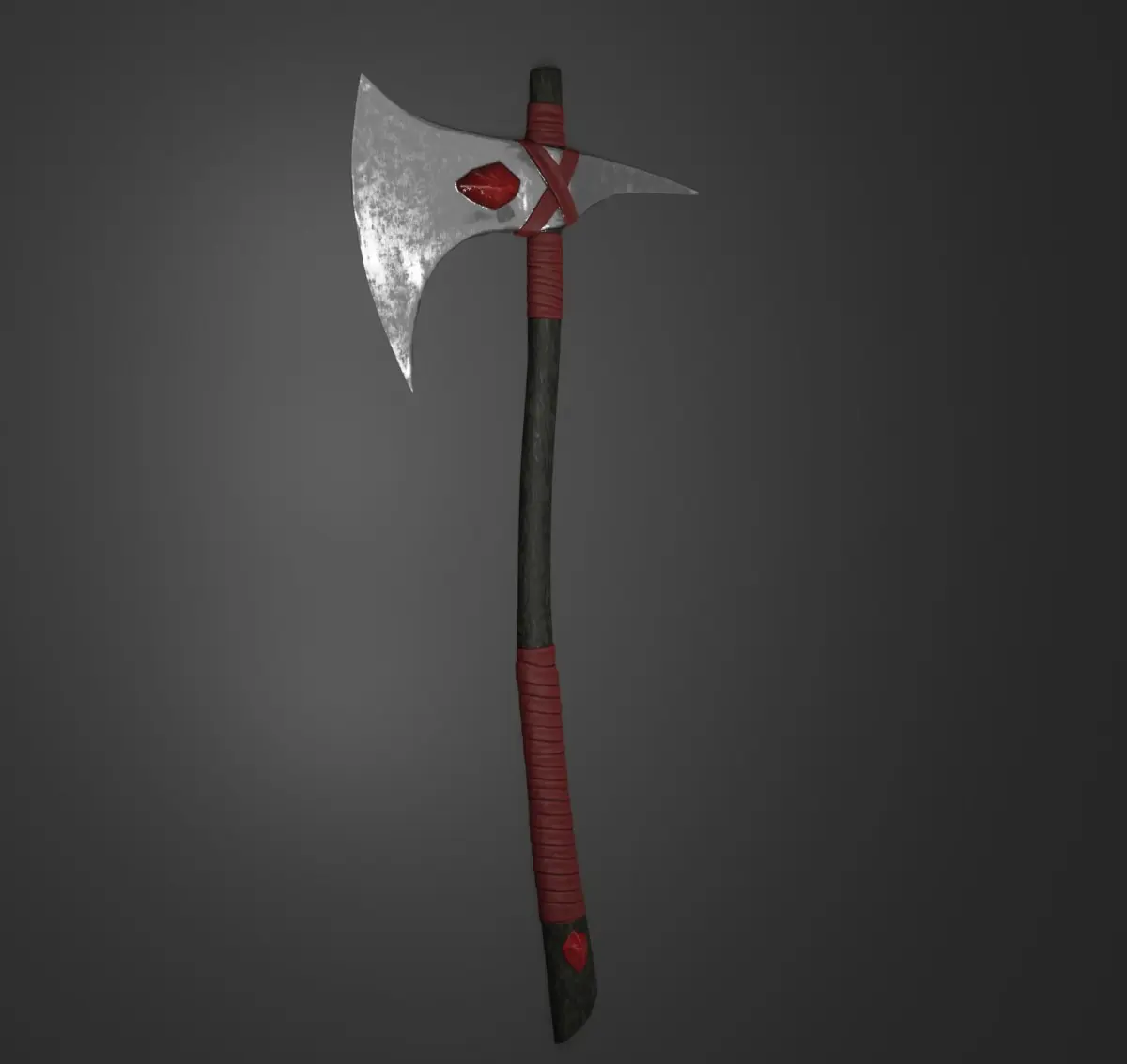 Axe Weapon with blood crystas low-poly game ready PBRVertices 2144Faces 2152