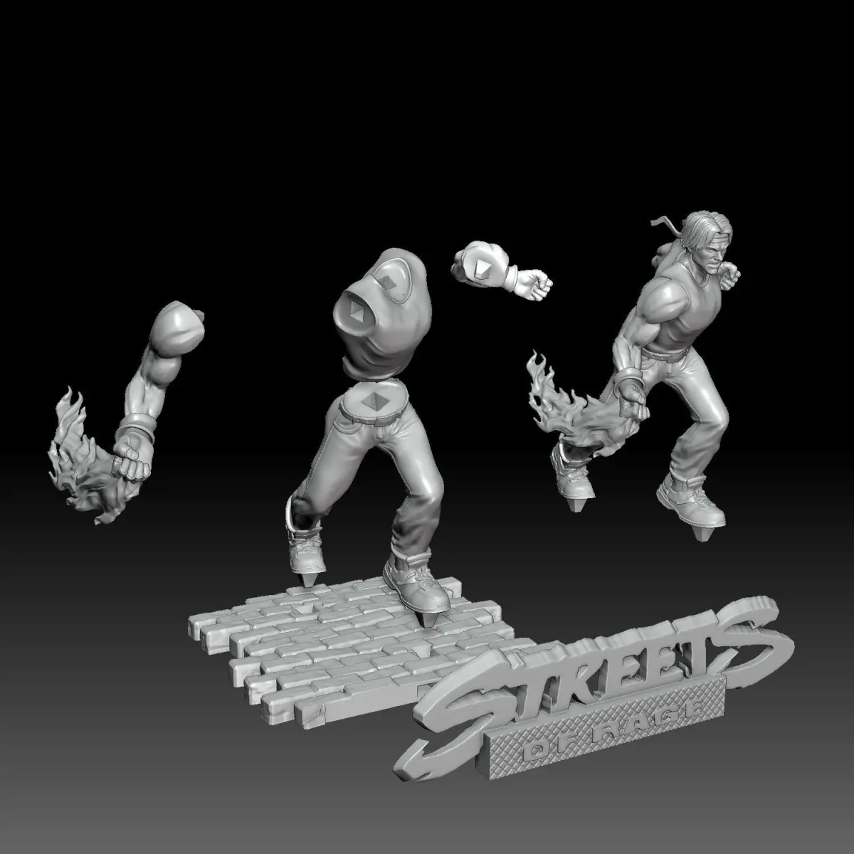 Axel Stone is one of the main protagonists of the Streets of Rage series. He is a former member of the Wood Oak City Police Department.3D printing settings: Model has merged and splitted version with thematic platfrom. Default printing size is 20 cm