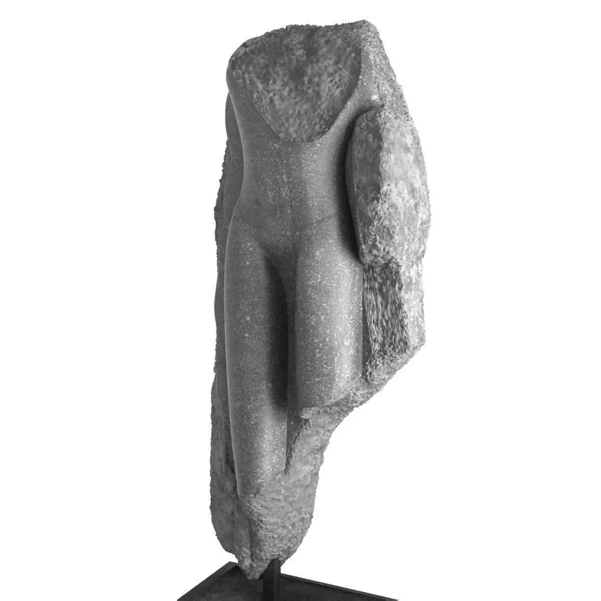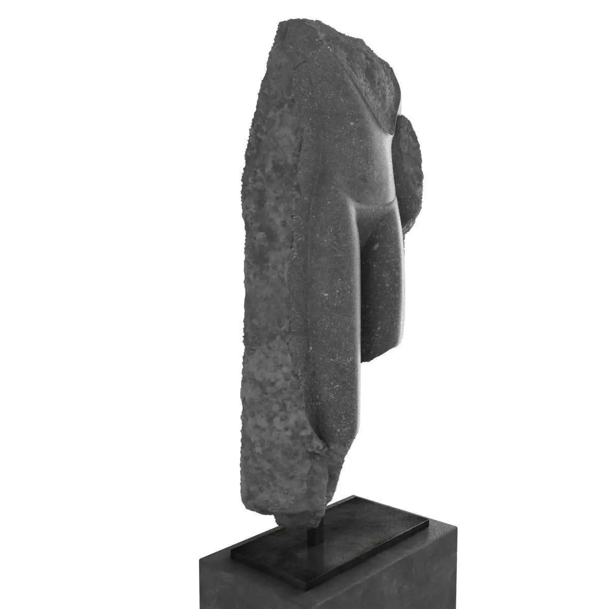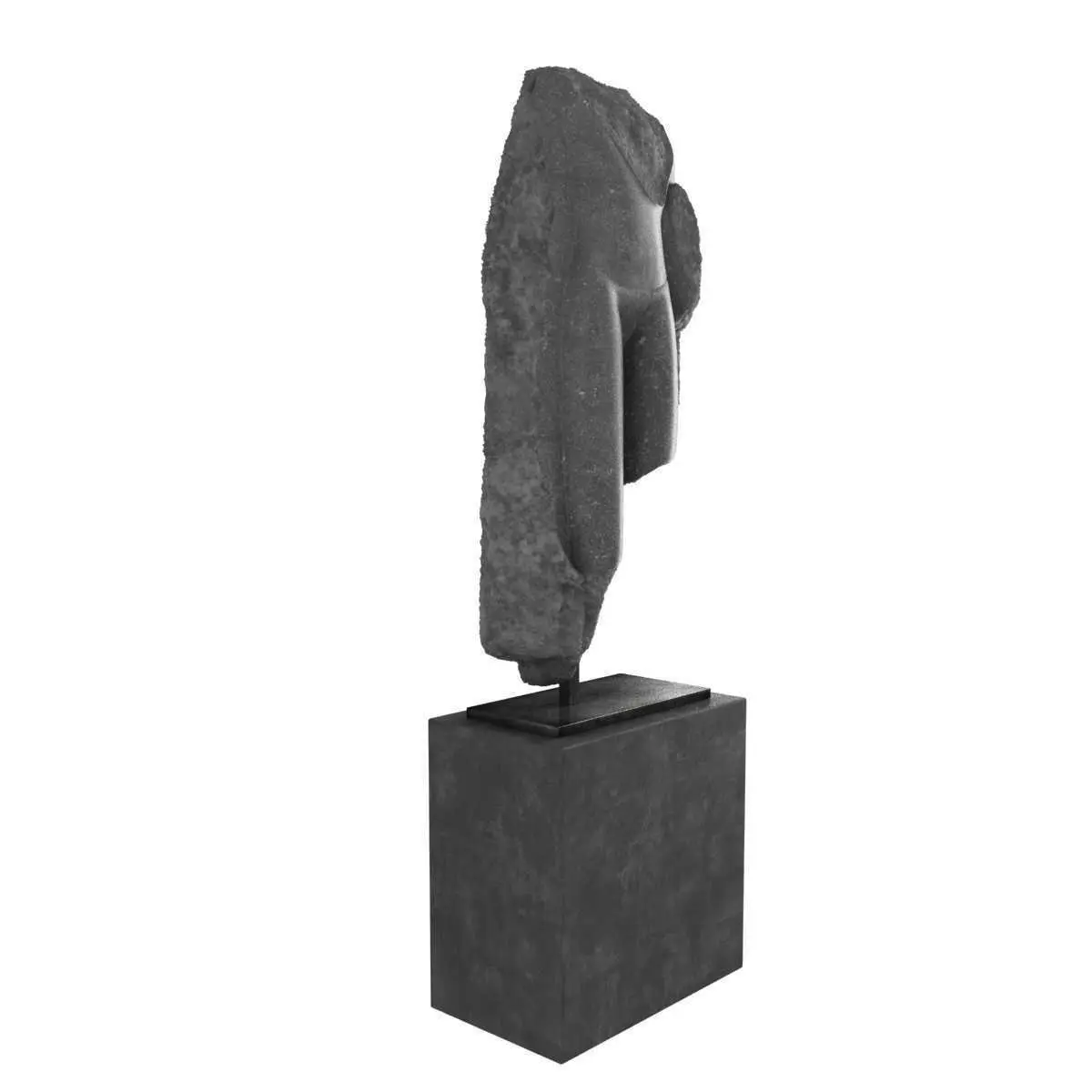 This slate torso wears a tightly-clinging monastic robe, revealing the contours of an apparently sexless body. The aesthetic qualities of this torso are derived from the harmonious balance of volumes, the beautiful contours and the fine stone surface. The image of the Buddha or The Enlightened One expresses serene quiescence. The harmony of his perfect proportions and the graciousness of his physical form represent one of the many qualities or powers of a Buddha. This poised appearance describes the ideal picture of a Heavenly Body that is not subject to change or decay. It is thought that this idea of eternal beauty that will never perish, is the reason why Buddha figures were often made in stone, even though the Mon sculptors experienced some difficulty in working the limestone they had available.