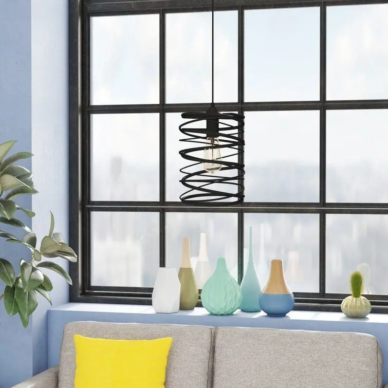 - Add bold, modern style to your space with this striking geometric single pendant. Crafted from metal, its matte black finish and unique spiral shade demand attention in any room.