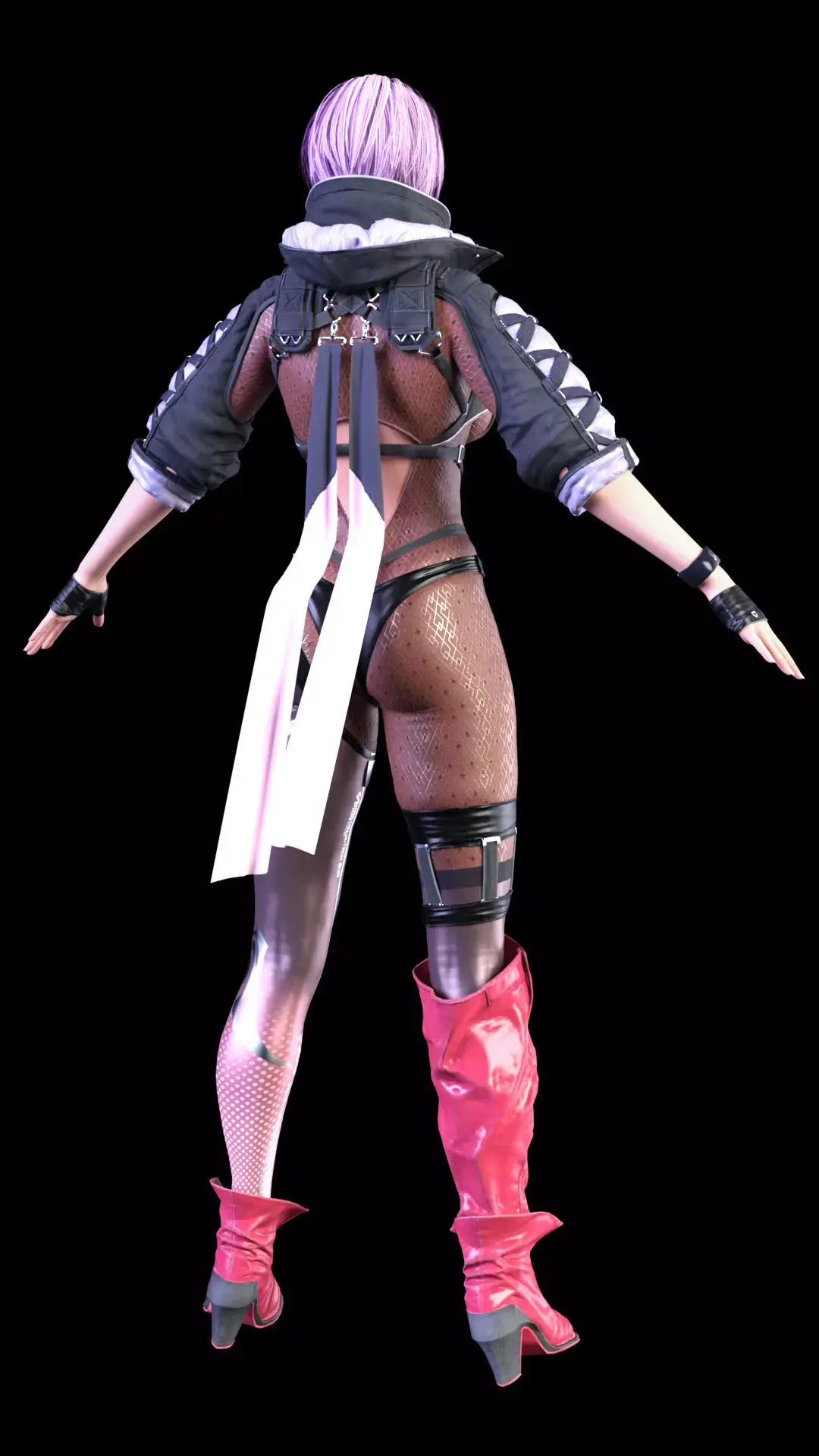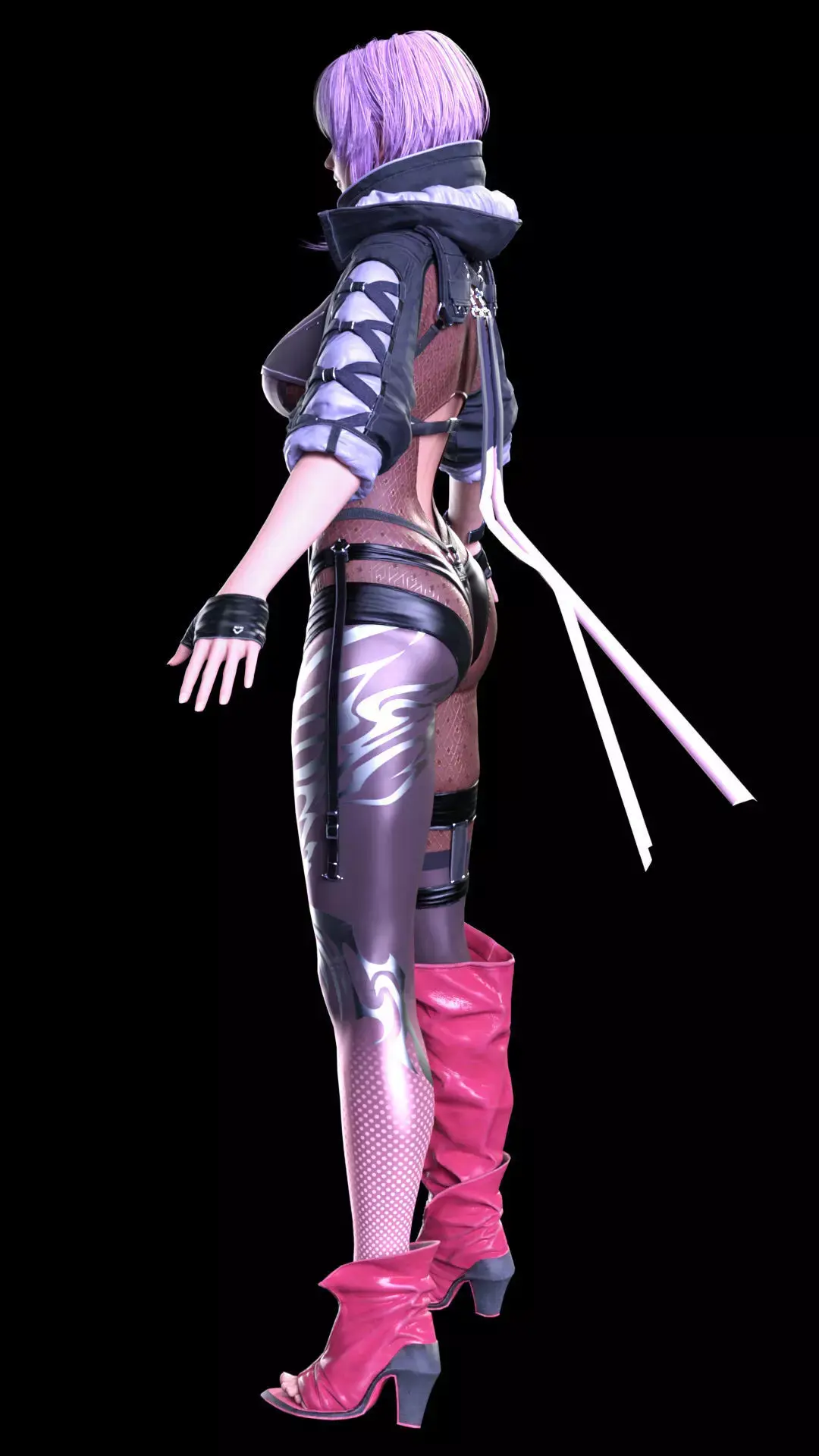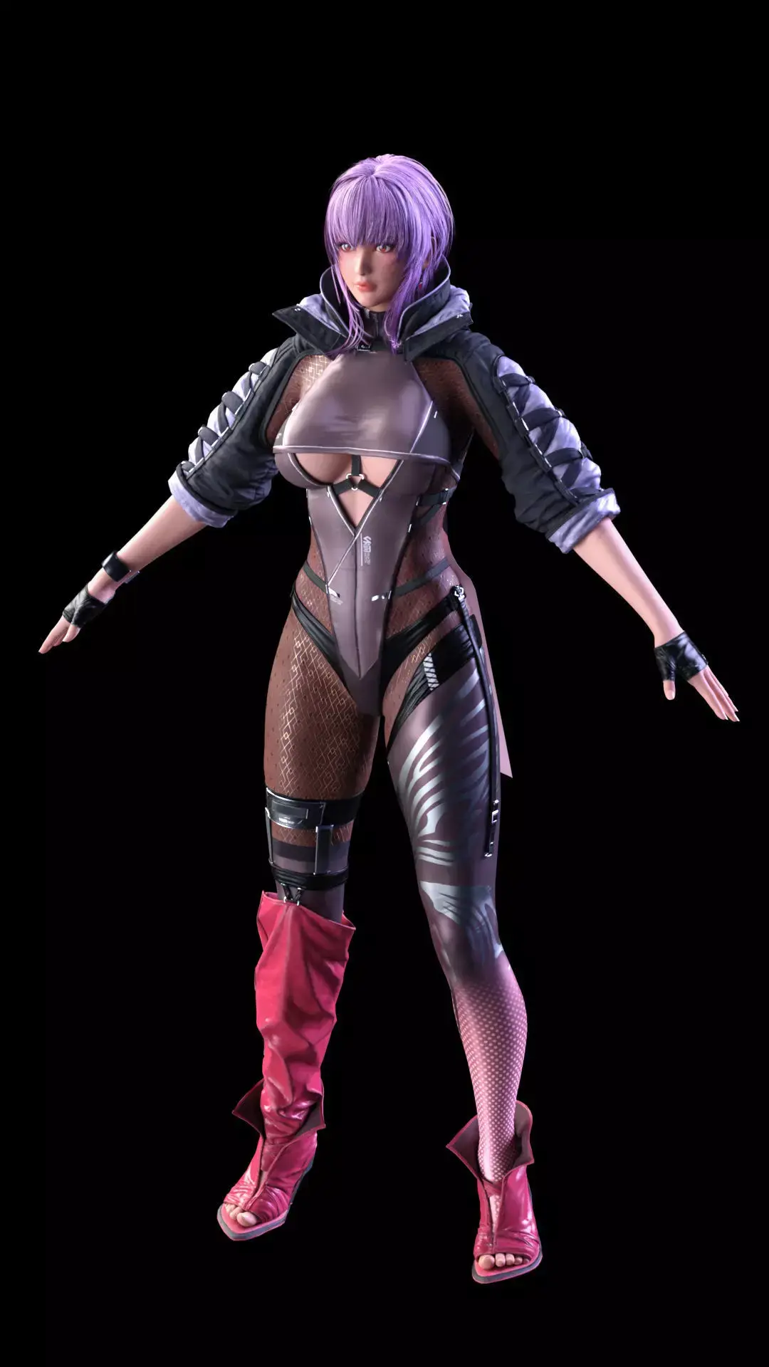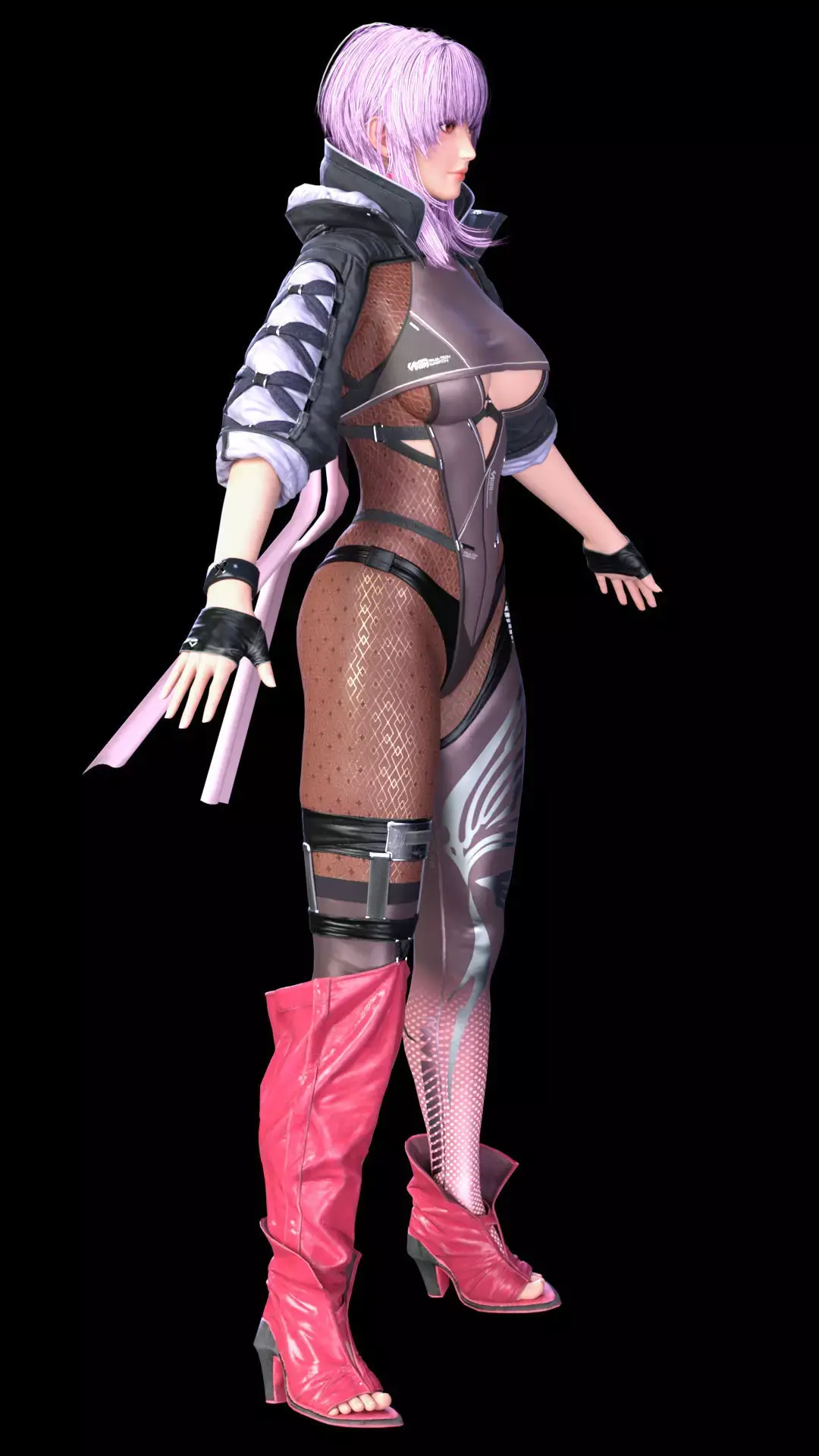 cquire this highly detailed, ultra-realistic 3D model of Ayane, the Killer Kunoichi from the Dead or Alive and Ninja Gaiden franchises. This model features a striking, futuristic combat outfit that blends her ninja origins with a cyberpunk aesthetic, making it an ideal asset for high-end cinematic renders, sci-fi action games, or any project requiring a dynamic and visually complex female warrior.