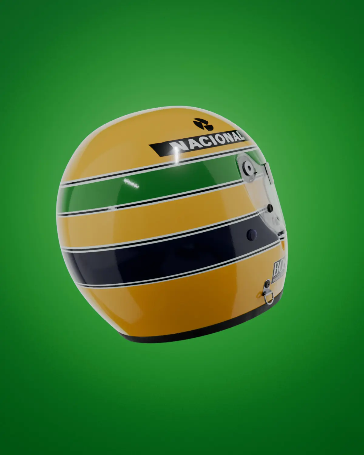 A highly detailed medium-poly 3D model of Ayrton Senna’s iconic helmet from the 1988 Monaco Grand Prix, a race that marked F1 history. Carefully designed to replicate every detail, this model showcases the striking yellow color and authentic sponsor logos that symbolize a legendary era.