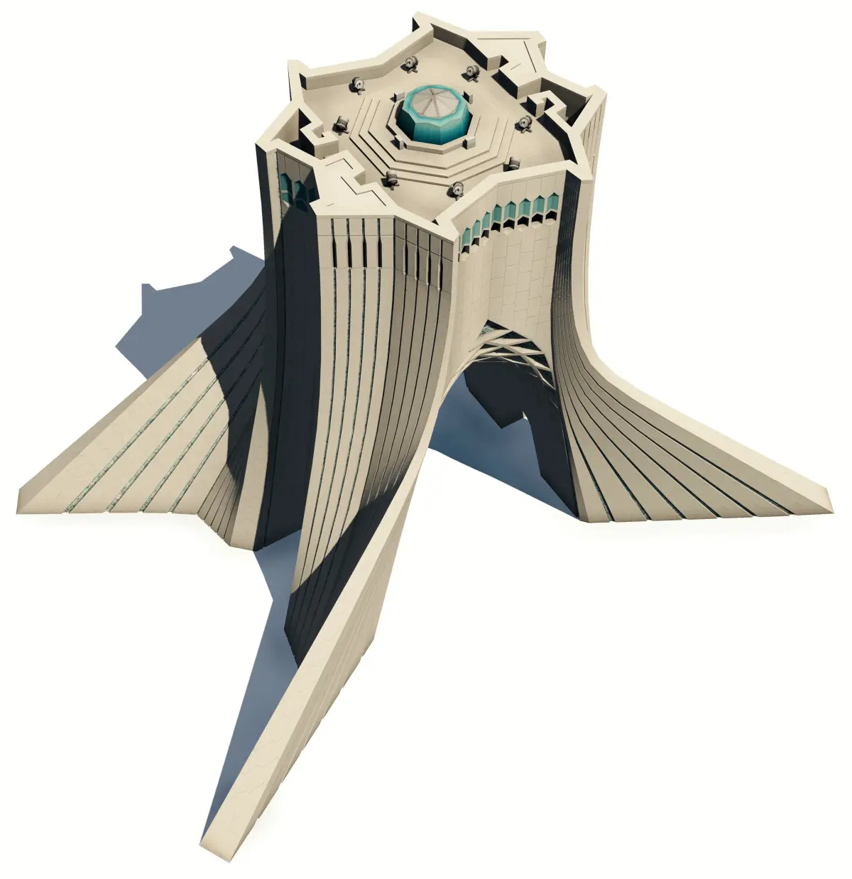 Low poly but reasonably detailed model of the Azadi Tower landmark from Tehran, Iran. Architect: Hossein Amanat. Opened in 1972.