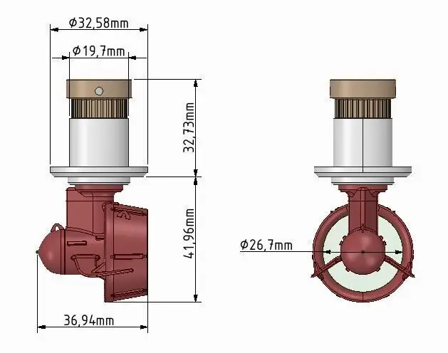 Benötigt werden:1x Messingrohr 8x1x502x Kugellager 12x8x3,52x Kugellager 13x5x3 für Anlenkungsvariante mit Stirnrad1x Wellendichtring 12x8x34x Inbus M2x51x Motor https://de.aliexpress.com/item/1005002482442408.html?spm=a2g0o.order_list.order_list_main.23.41695c5flJ2sqc&gatewayAdapt=glo2deu
