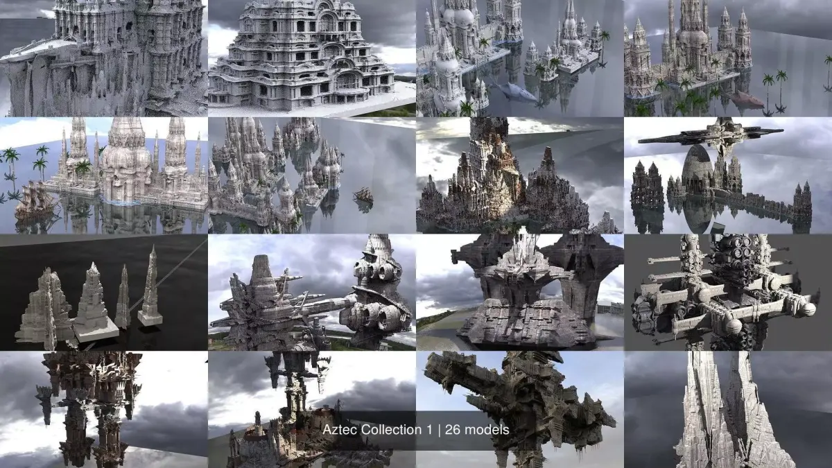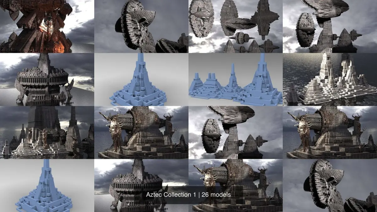 Aztec Collection 1 futuristic looking cross 3D Model Pack