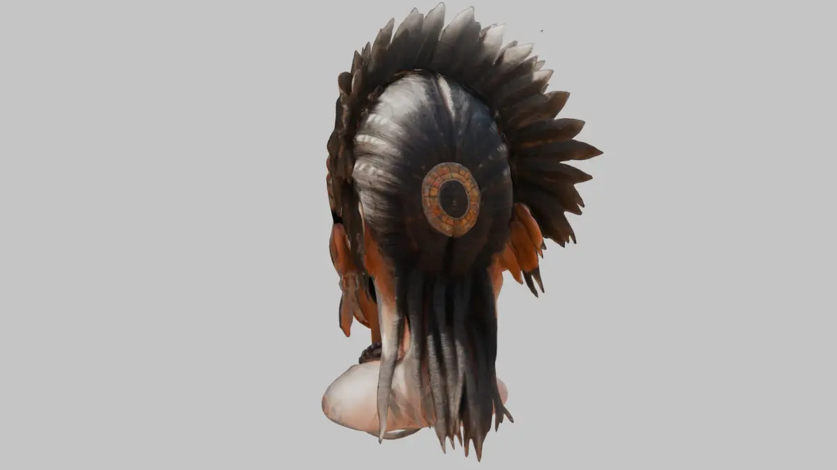 - The headdress is designed with simple, geometric shapes to represent feathers, beads, or woven materials, adding to the character’s cultural authenticity.