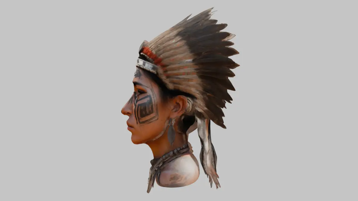- Stylized Textures: Includes simple, hand-painted or flat-shaded textures that complement the low-poly art style and enhance the headdress, skin, and fabric details.