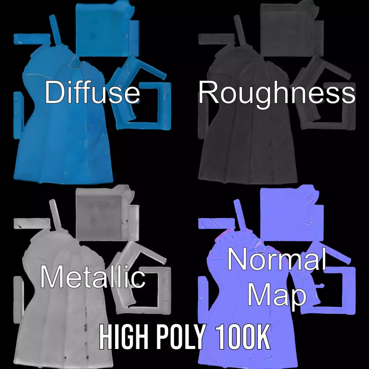 The model's textures are PBR, Diffuse, NormalMap, and reflection/roughness/metallic, which are suitable for any modern rendering engine. All models are accurately unwrapped and have no overlapping UV. All textures are 4096*4096 in size.