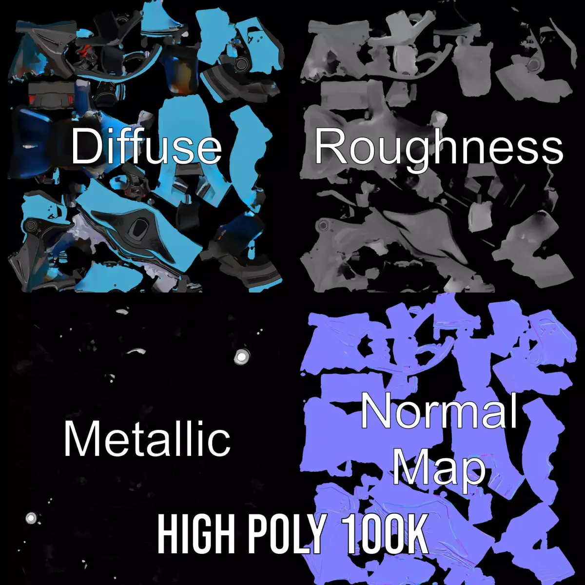 The model's textures are PBR, Diffuse, NormalMap, and reflection/roughness/metallic, which are suitable for any modern rendering engine. All textures are 4096x4096 in size. All models accurately unwrapped and have no overlapping UV.