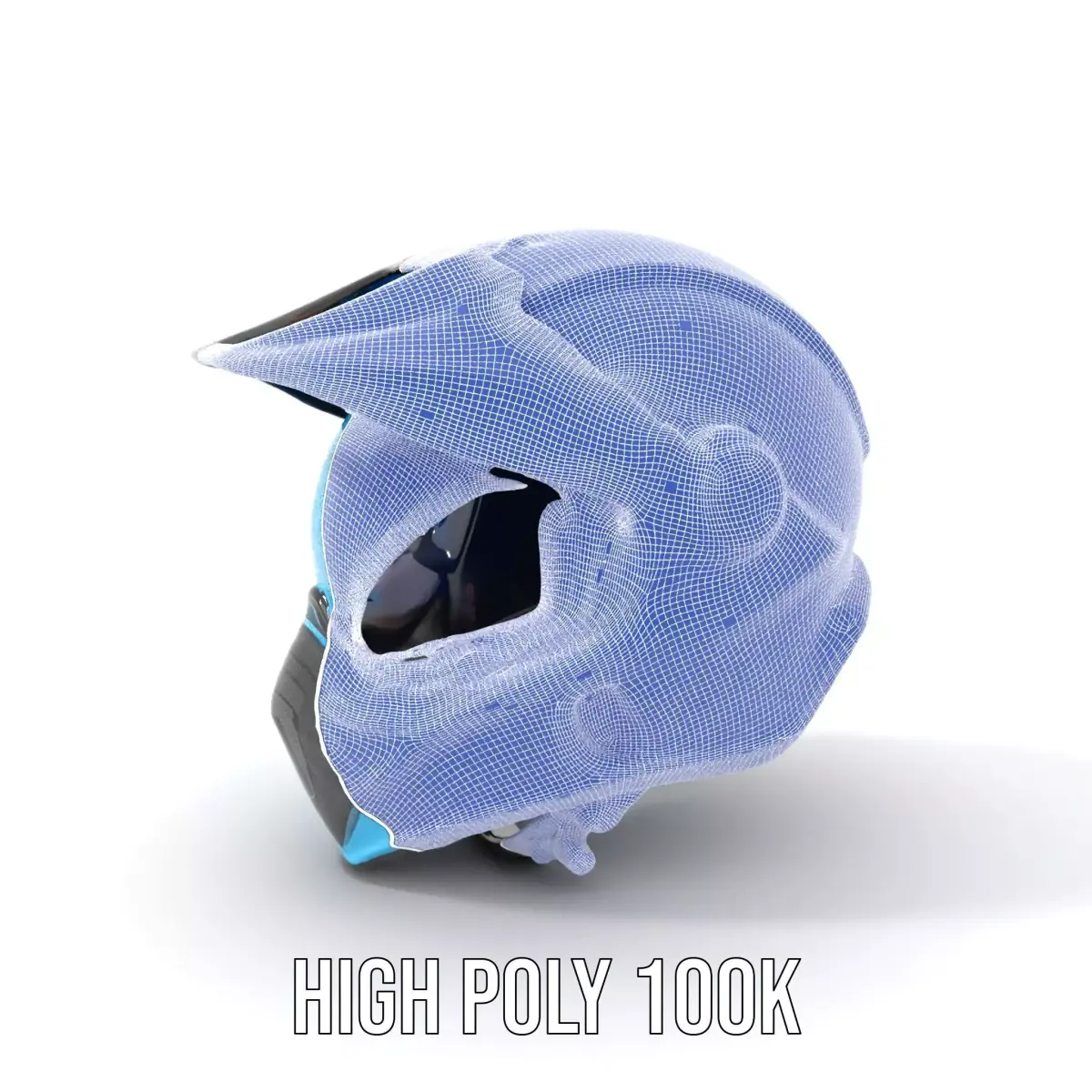 This Azure Racing Helmet model pack features a sleek and aerodynamic motorcycle helmet design, perfect for enhancing vehicles and racing scenes in various 3D applications. The helmet showcases a dynamic, modern style with a vibrant azure color, black accents, and a tinted visor, making it highly appealing for virtual motor racing setups.