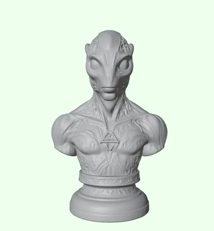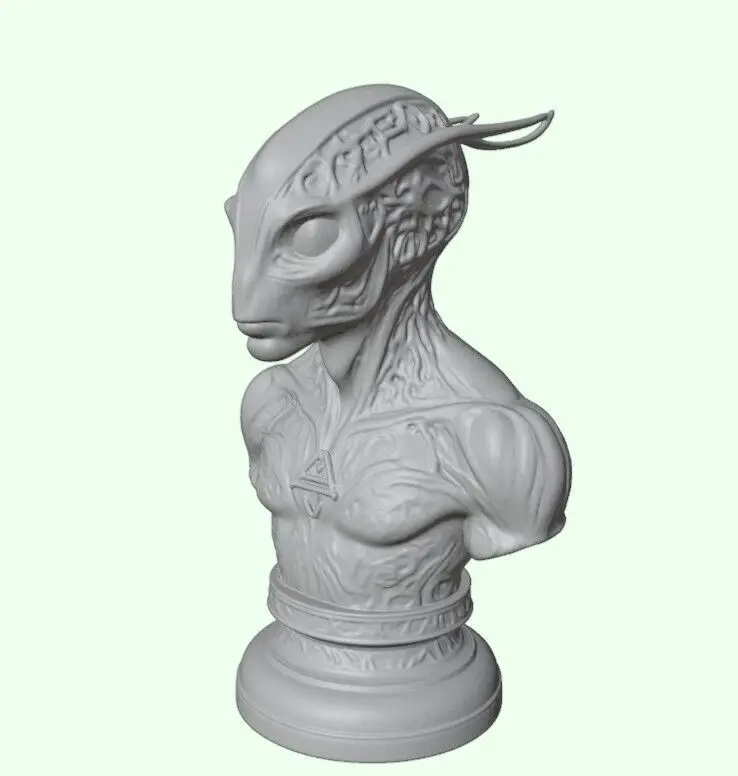 This bust depicts an adult Veyran ambassador, poised in calm contemplation, with their iconic tendrils sweeping elegantly over a finely detailed ceremonial pedestal. Ideal for science fiction dioramas, alien diplomat collections, or as a display centerpiece that embodies the mystery and beauty of the unknown.
