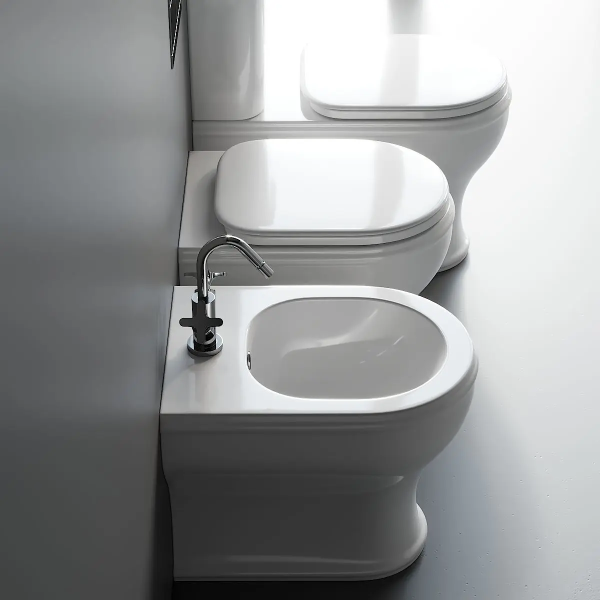 Bidet:Collection - CharmeType - Floor mounted bidetProduct code - CHBIT000000MDesigner - Laudani & RomanelliDimensions: Width - 400mm Depth - 520mm Height - 420mm