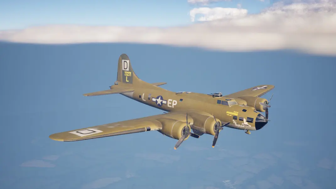 This 3d model is a B-17F-40DL with nose art of Nine Little Yanks and a Jerk.
