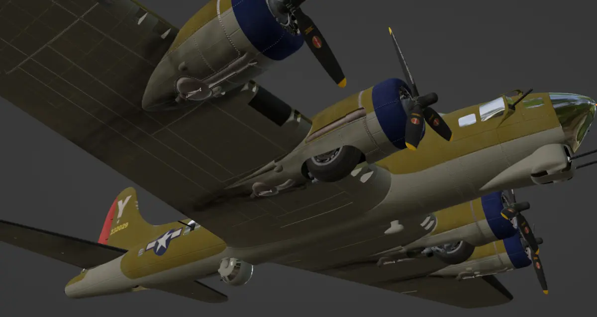 This is a 3d model of a early B-17G-35-BO with olive drab/neutral gray paint scheme and steeplechase tail gun position.Historically, this aircraft was delivered to the Army Air Force in early '44. She was assigned to the 483rd bomb group/815 BS 15th airforce based in Italy.The 483rd BG was activated in the United States on 20 September 1943, the 483rd moved to Italy in March and April 1944. The combat operations of the Fifteenth Air Force began in April 1944 and they missions against enemy controlled targets in Austria, Czechoslovakia, Germany, Greece, Hungary, Poland, Southern France and Yugoslavia. The 483rd also supported ground forces during the invasion of Southern France in August 1944 and the Allied offensive in Northern Italy in April 1945.Miss Treated was shot down and crashed landed in late '44 where most of the crew survived.Model comes with landing gear extended and retracted.