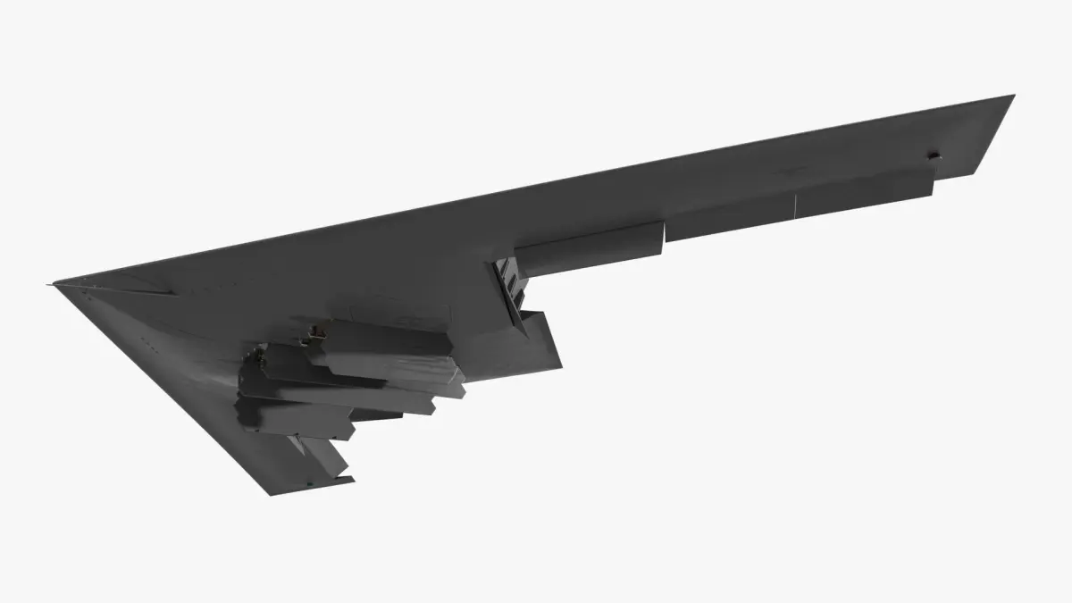 This model portrays a stealth aircraft with angular flying wing geometry, detailed surface paneling, and open weapon bay doors in mid-release sequence. It includes a precision-guided bomb in deployment, highlighting the internal payload capacity and aerodynamic contouring of the bomber. The model is fully rigged and animated to showcase realistic attack scenarios and gear mechanisms.