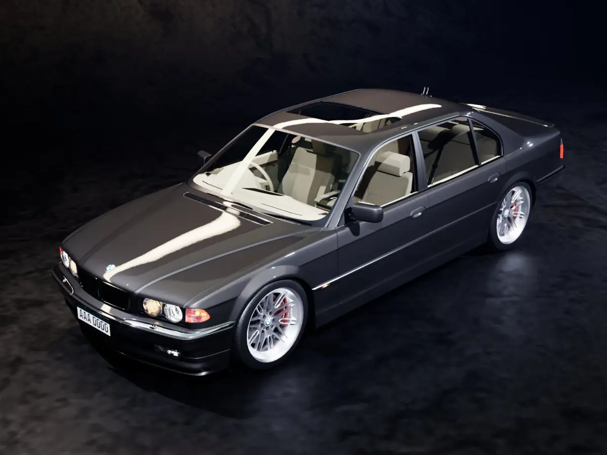 High-quality 3D model of the 2001 750iL luxury sedan. This detailed model accurately captures the elegant design and proportions of the iconic E38 flagship, perfect for automotive visualizations, animations, and realistic rendering projects. Features include a fully textured exterior, optimized geometry, and clean topology.