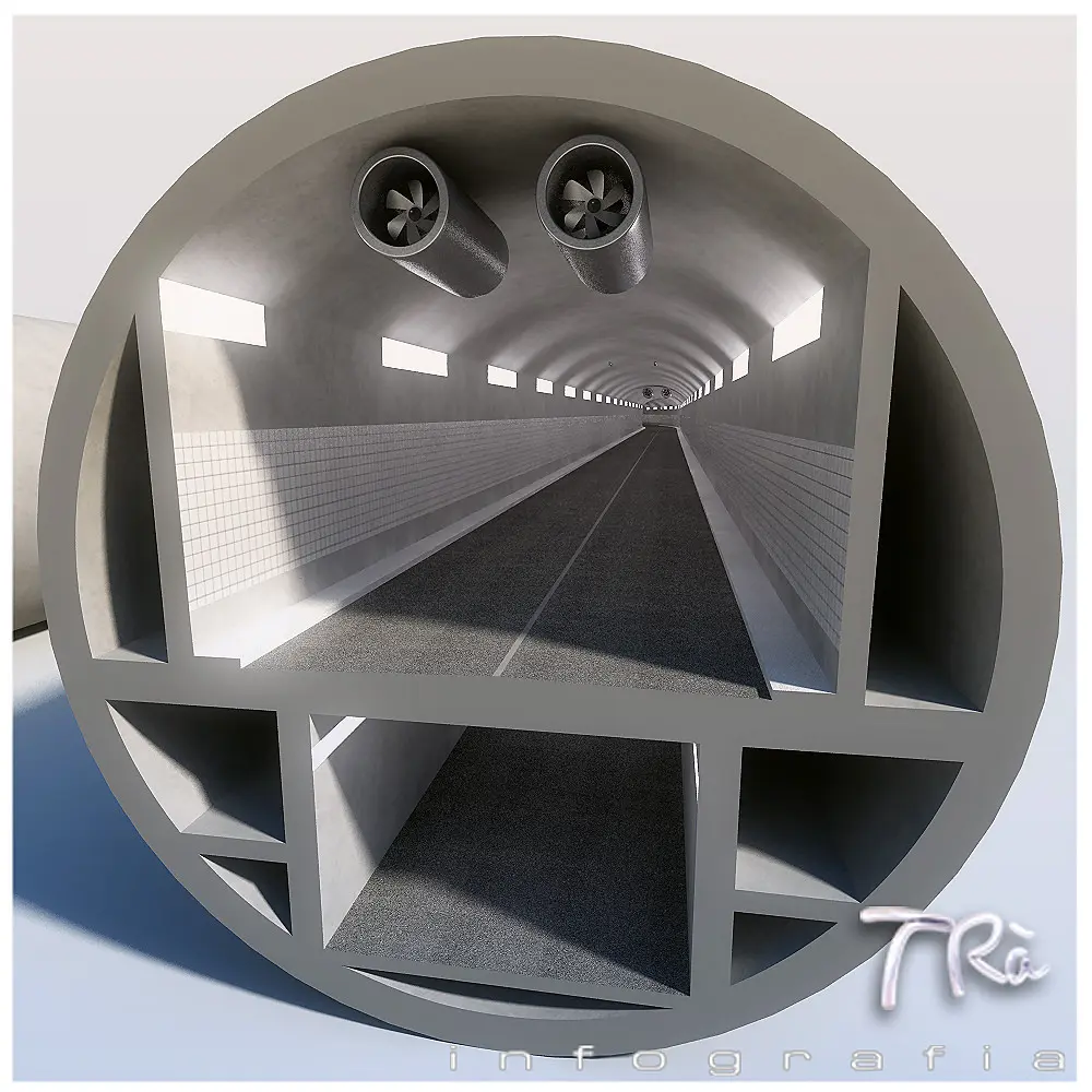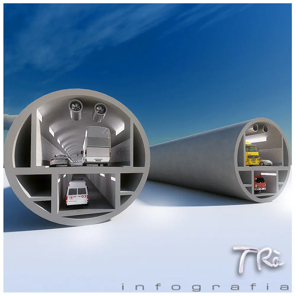 Tunnel section with emergency roads,tileable along a path deform with a displacement of the same for the length ofthe section, so you can build tunnels infinite and desired shape, modeled withMax 2010 and Vray materials. Includes materials and maps. Vehicles notincludes.