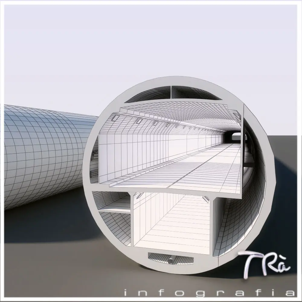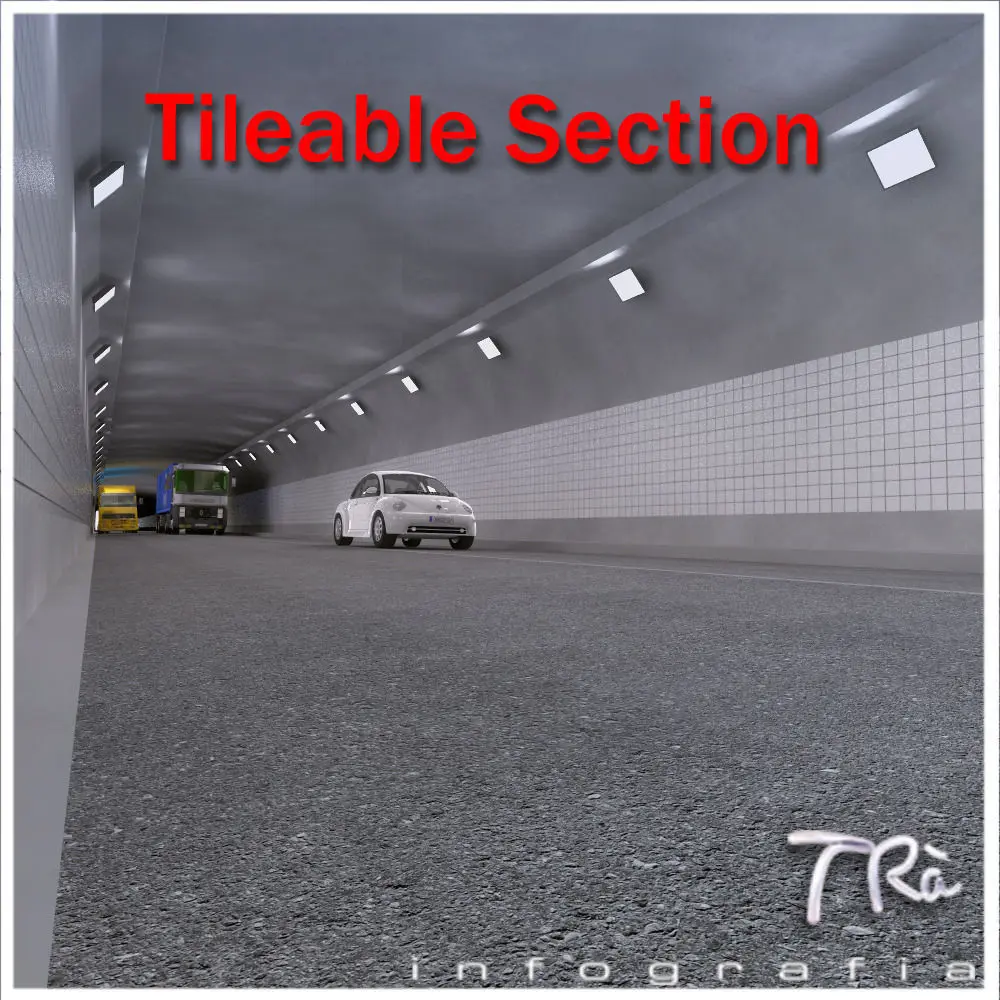 Tunnel section with emergency roads, with details of gateway connection with evacuation road, tileable along a path deform with a displacement of the same for the length of the section, so you can build tunnels infinite and desired shape, modeled with Max 2010 and Vray materials. Includes materials and maps. Vehicles not includes.