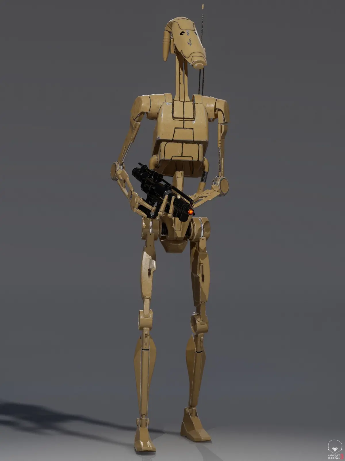 B1-series battle droids, game-ready and textured - also comes with the blaser. AAA quality. ready to be put in engine.