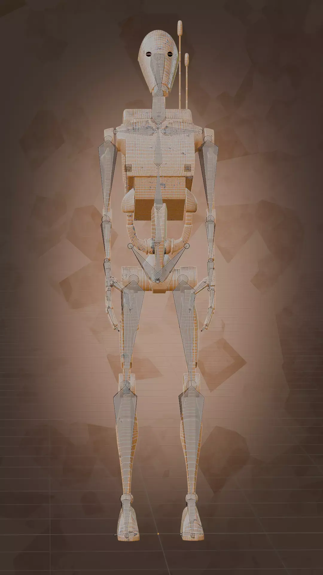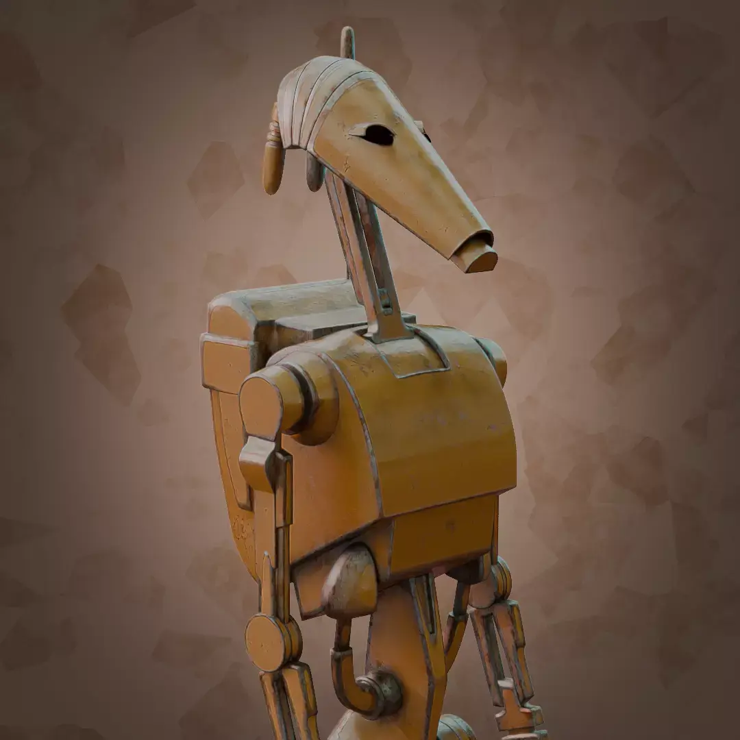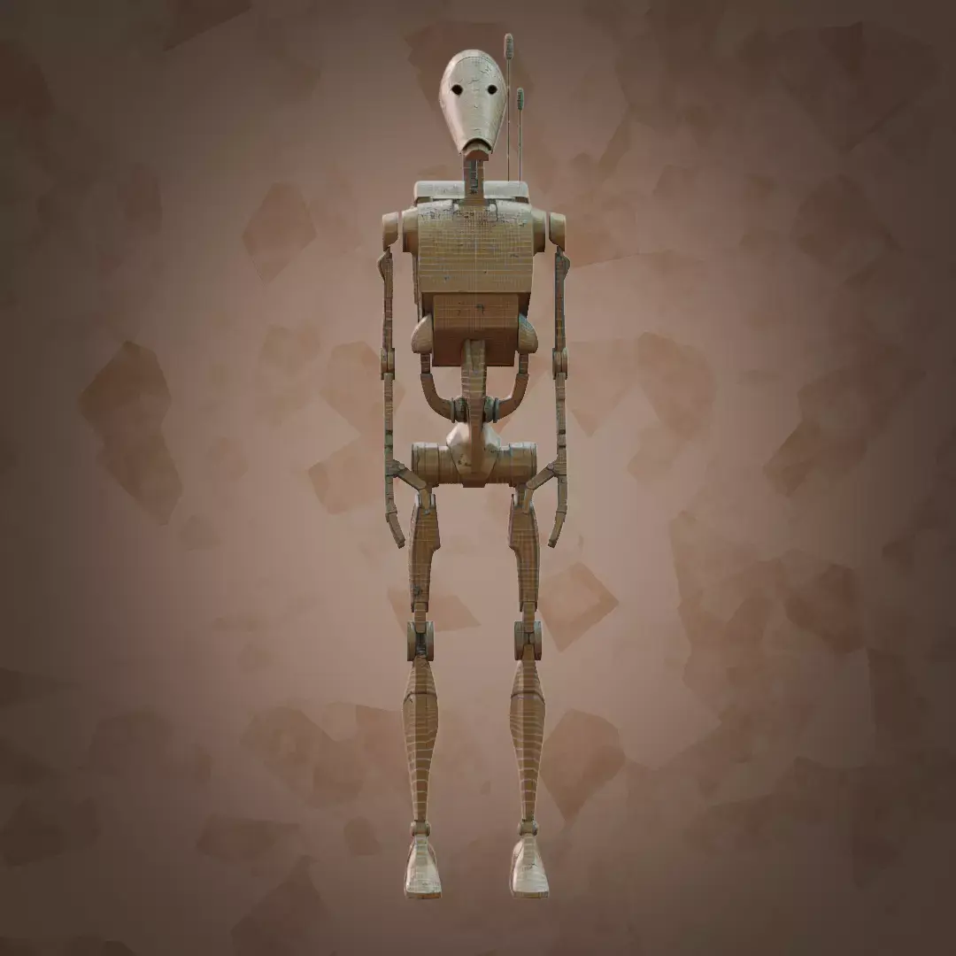 B1 Battle DroidA game-ready, stylized 3D model of a B1 Battle Droid from Star Wars, perfect for games, animations, and sci-fi projects. The model is built for performance and includes a robust rigging system and flexible materials.