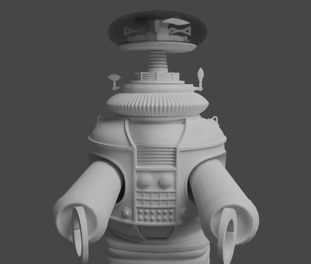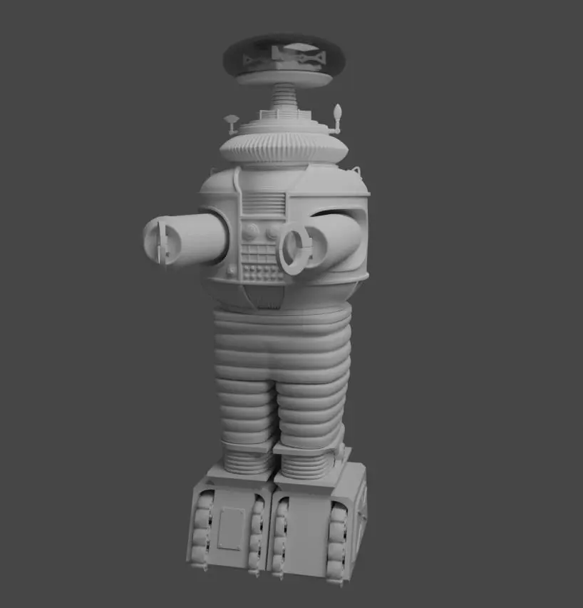 The B9 is based on the robot depicted in the 1965 classic, Lost in Space. B9 was originally designed for animation, but it has been remodeled and redesigned for 3D printing. The robot has been designed to be printed in parts, making it easier to print and to vary the colors used for output, reducing the need to paint every element. It has also been designed to allow for a limited amount of posing, including the ability to move the head, torso, and arms.