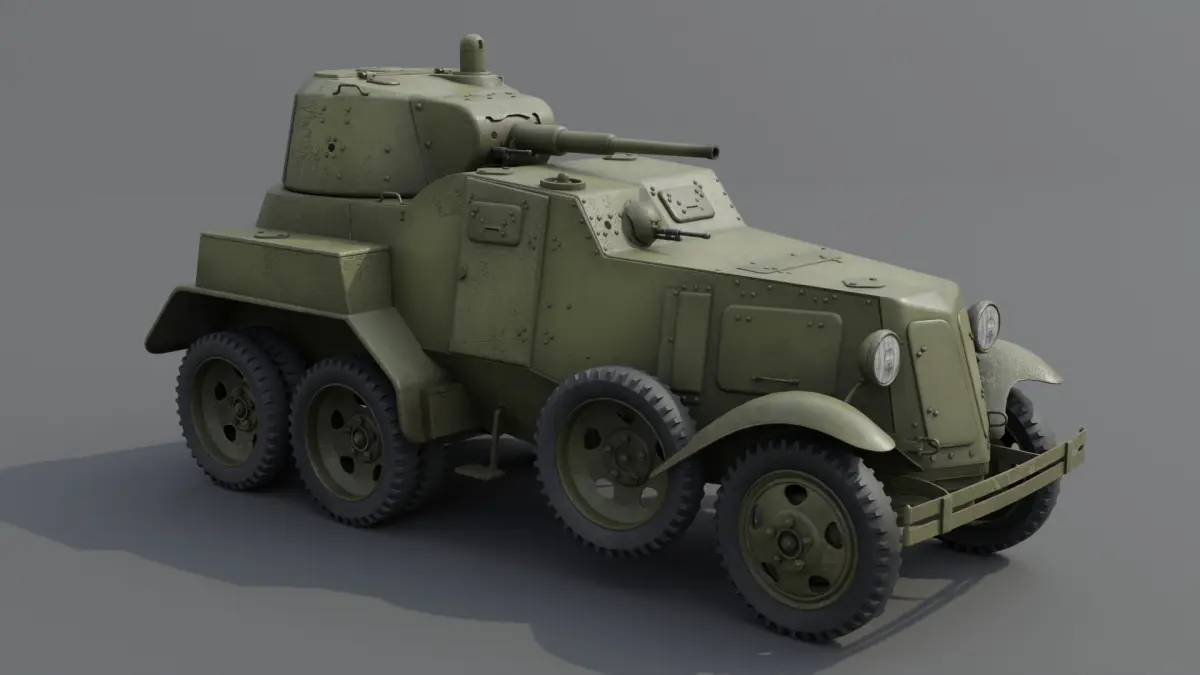 Description:The BA-10 (Russian: Broneavtomobil 10) was an armored car developed in the Soviet Union in 1938 and produced through 1941. It was the most produced Soviet pre-1941 heavy armored car – 3311 were built in three versions. These versions were the BA-10, the BA-10M (improved version with new radio), and the BA-10ZhD (equipped for dual railway/road use). The basic BA-10 design was developed from the BA-3 and BA-6 heavy armored cars. It had an improved GAZ-AAA chassis and improved armor (up to 15mm at front and turret). It was intended that the BA-10 would be replaced in 1941 by the BA-11 with diesel engine and more sophisticated armor design, but the outbreak of war prevented BA-11 production. The BA-10 was in Red Army service until 1945. Significant numbers of captured BA-10s were used by Finland (at least 24, 3 of which were sold to Sweden), Germany and other Axis powers in Europe.During the late 1930s, Soviet armoured fighting vehicle designers incorporated sloped armor into all their new designs, and redesigned some existing vehicles to take advantage of it. The BA-10 used a slightly smaller, better-sloped armor layout than that of the BA-6, thus improving protection while saving weight. The greater engine power (50 hp (37 kW), compared to 40 hp (30 kW) on the BA-6) made the vehicle more reliable.Like its predecessors, the BA-10 could be converted to a half-track by fitting auxiliary tracks to the rear pair of dual tandem wheels. On early BA-10s, these tracks were stowed strapped on top of the fenders. Later vehicles had an enclosed stowage box for the tracks in the same location. The tracks were often fitted when the vehicle needed to move across snow or soft ground.