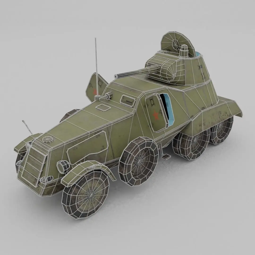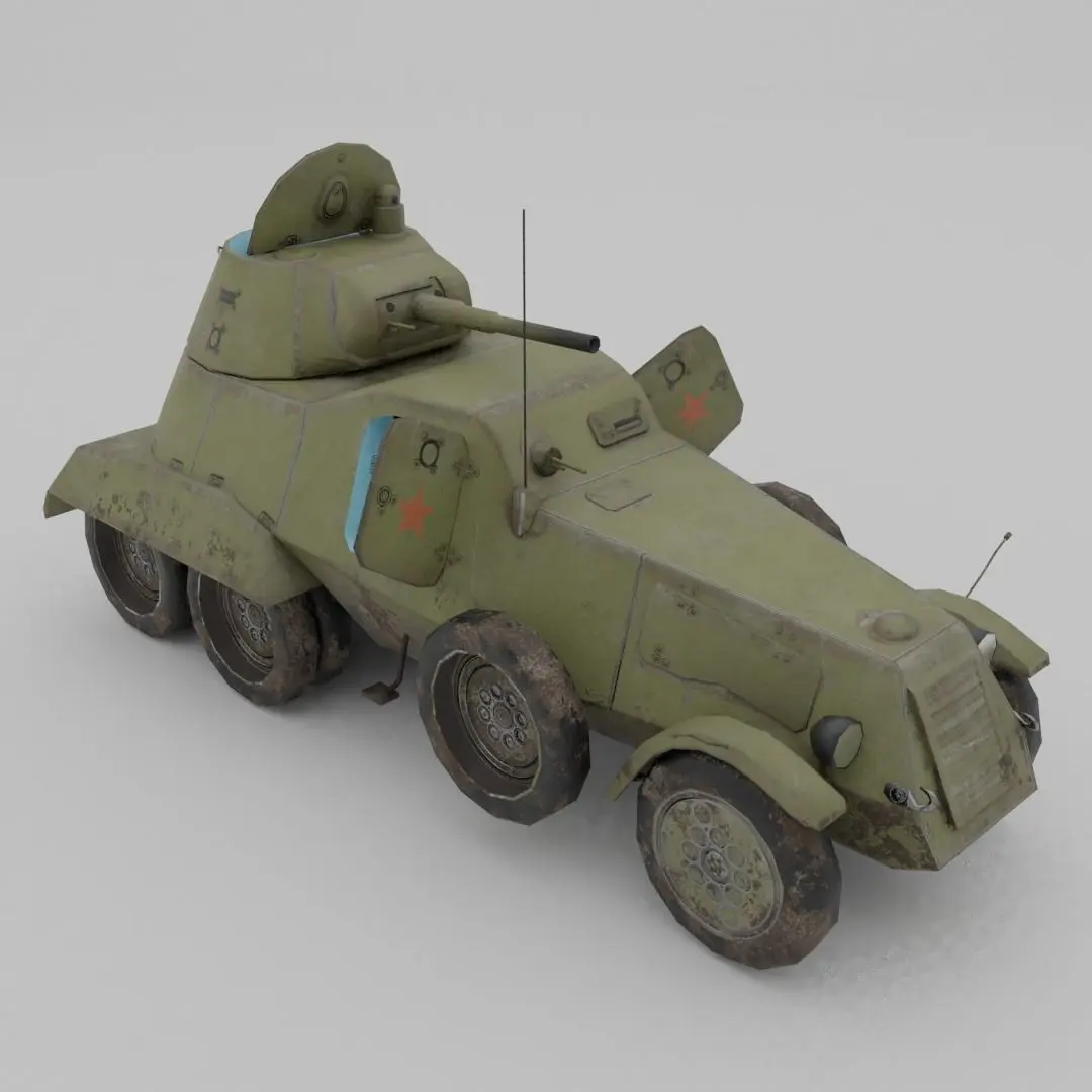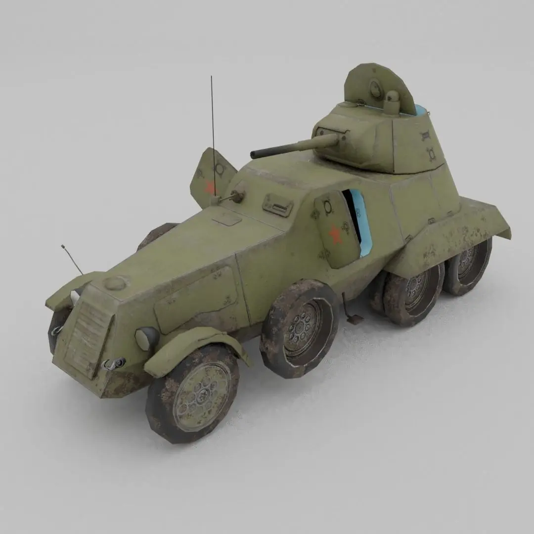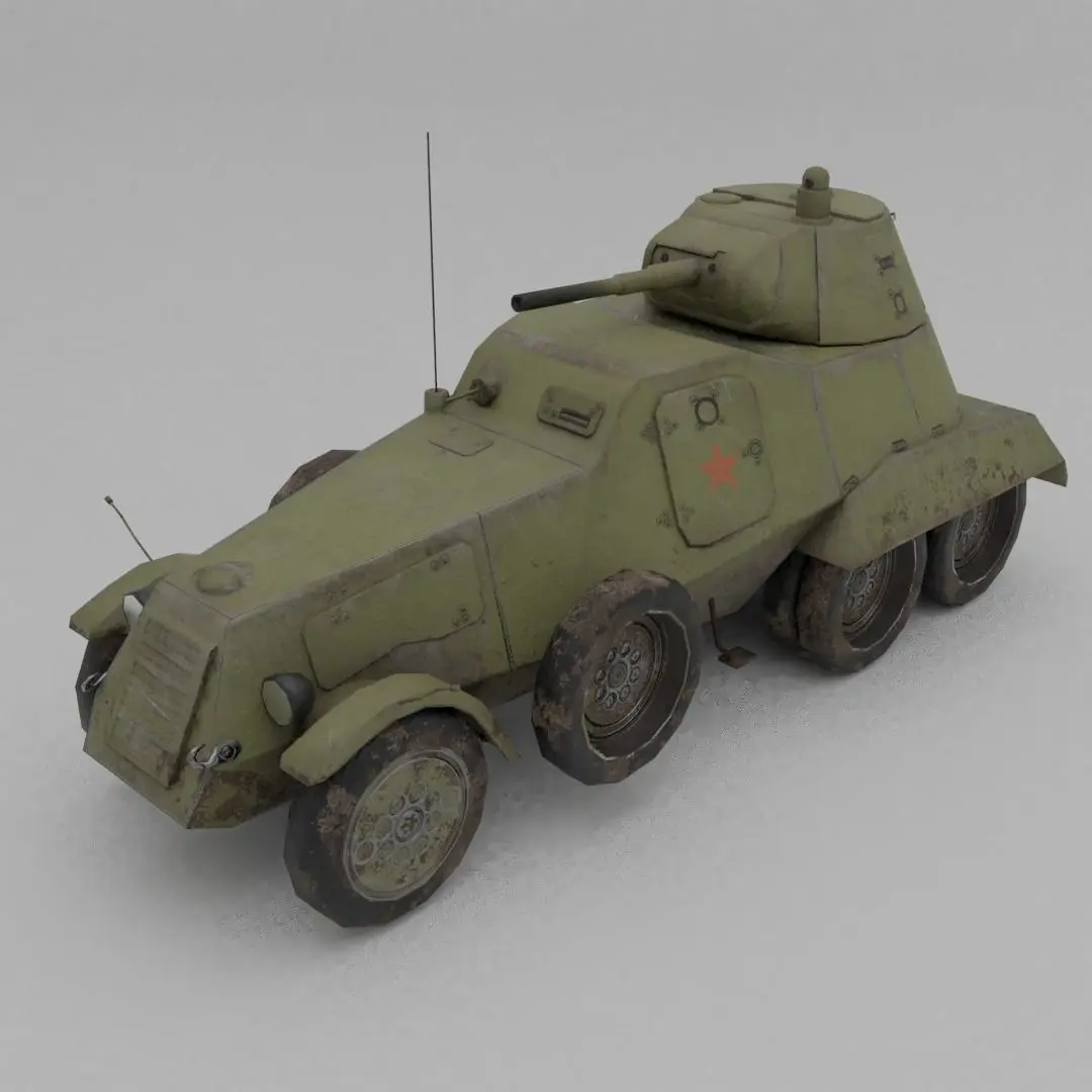 Description:The BA-11 or Broneavtomobil 11 (Russian: БА-11 or Бронеавтомобиль 11) was an armored car developed in the Soviet Union. It was intended to replace the BA-10, but production was prevented by the Nazi German invasion of 1941. The BA-11 was a heavy armored car designed based on a strengthened ZiS-6K chassis. Used during 1941-1942 on the Leningrad front, it was designed to attack infantry, cavalry, and medium armored cars. With 13mm of frontal armour, it was only slightly less protected than the most common soviet light tank of the era, the T-26, which had 15mm of armour.