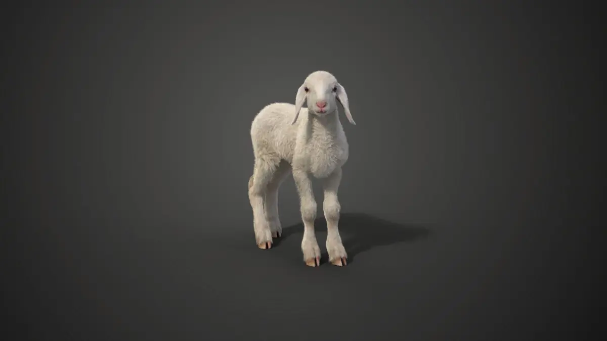 This is a baby assaf sheep model with 4K PBR textures, fur, rigging and animation. It has very detailed muscle structures, and the oral cavity is applied with 4K maps and plenty of details. The skin maps and hair maps are made separately for some realism, and the model supports close shot and close-up. There is a facial animation of eating grass and a fine facial controller with another four animations. The model is made with Cycles renderer.