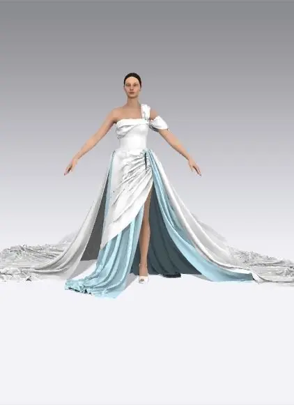 baby blue dress color block look modern chic 3D model