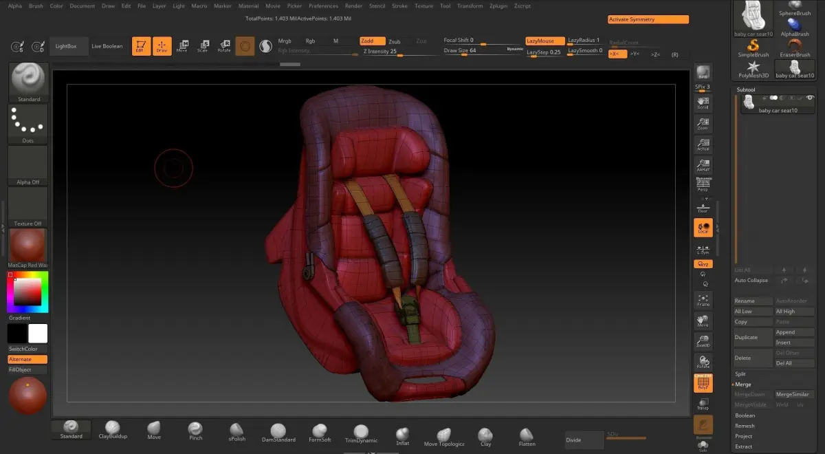 Baby Car SeatHight poly model-Zbrush (.ZPR,ZTL)-Autodesk Maya 2018-3ds max 2018-3ds max 2016-OBJ-STL-FBX