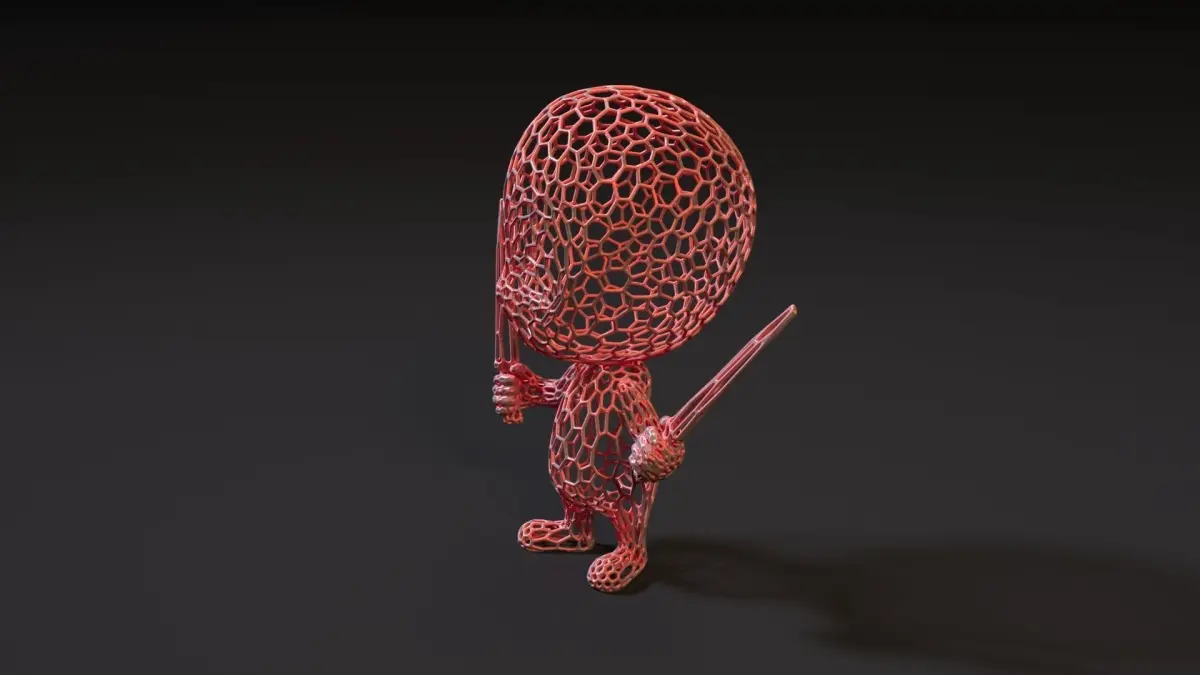Baby Deadpool voronoi. An unusual designer collectible figurine in the form of a Marvel hero. It will be a great decoration for your home or office. You can make a cool lamp out of it; to do this, you need to place a strip of LEDs inside.