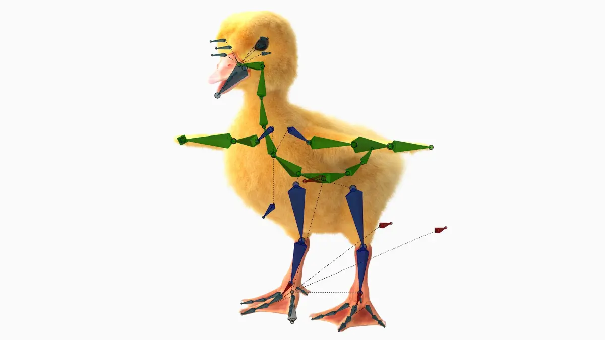 Baby Duckling Accelerates Animated Fur Rigged For Blender is fully rigged and is ready to be animated in Blender. You can easily position it the way you need or animate it the way your project requires. See the screenshots to get an idea of how rigging works. The pose of the model on the render images is an example and can be recreated using rig, it is not initially included into the product.
