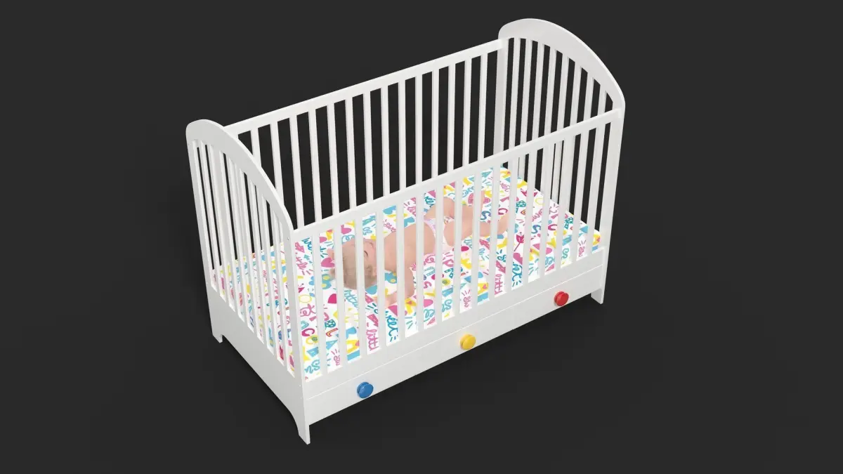 Baby Girl in Bed Sleeping Fur Rigged is a 3d model of an infant peacefully sleeping on a bed.