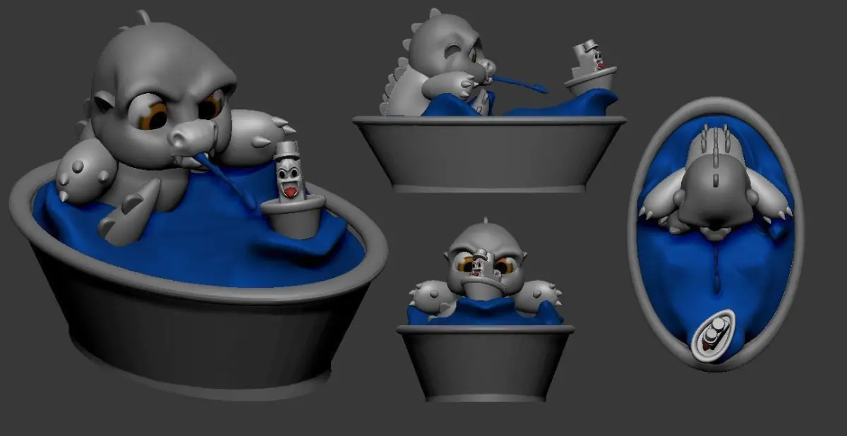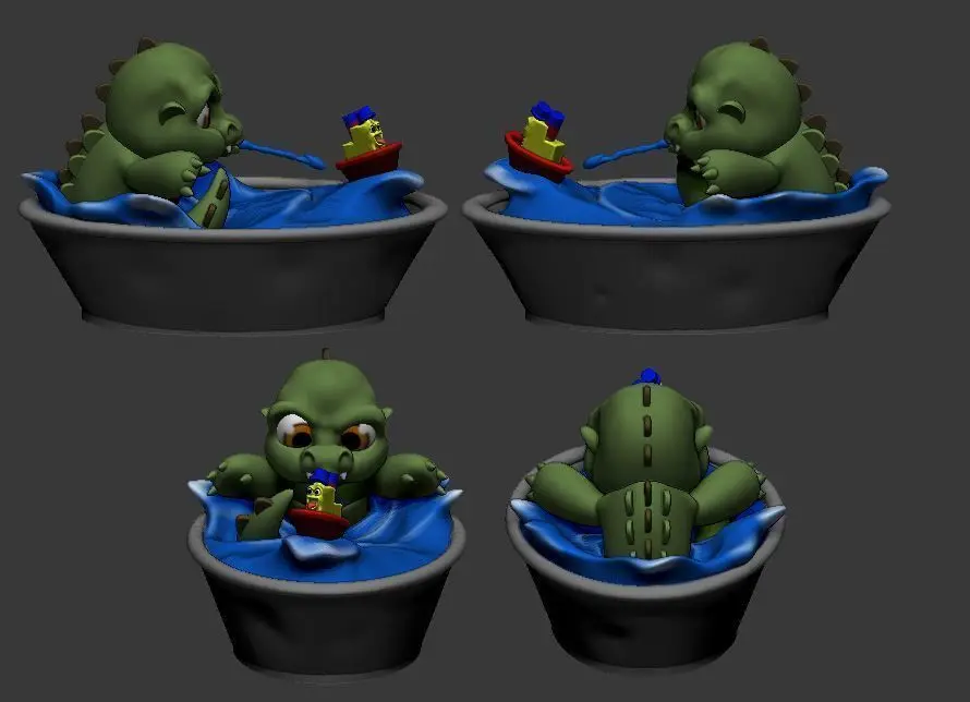 Baby Godzilla from the Godzilla movie, I wanted to create a model of what he might be like as a baby playing in the tub.