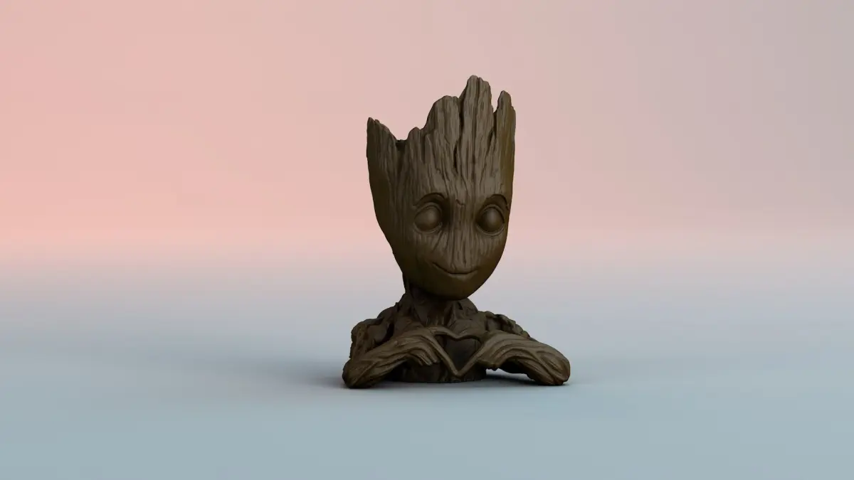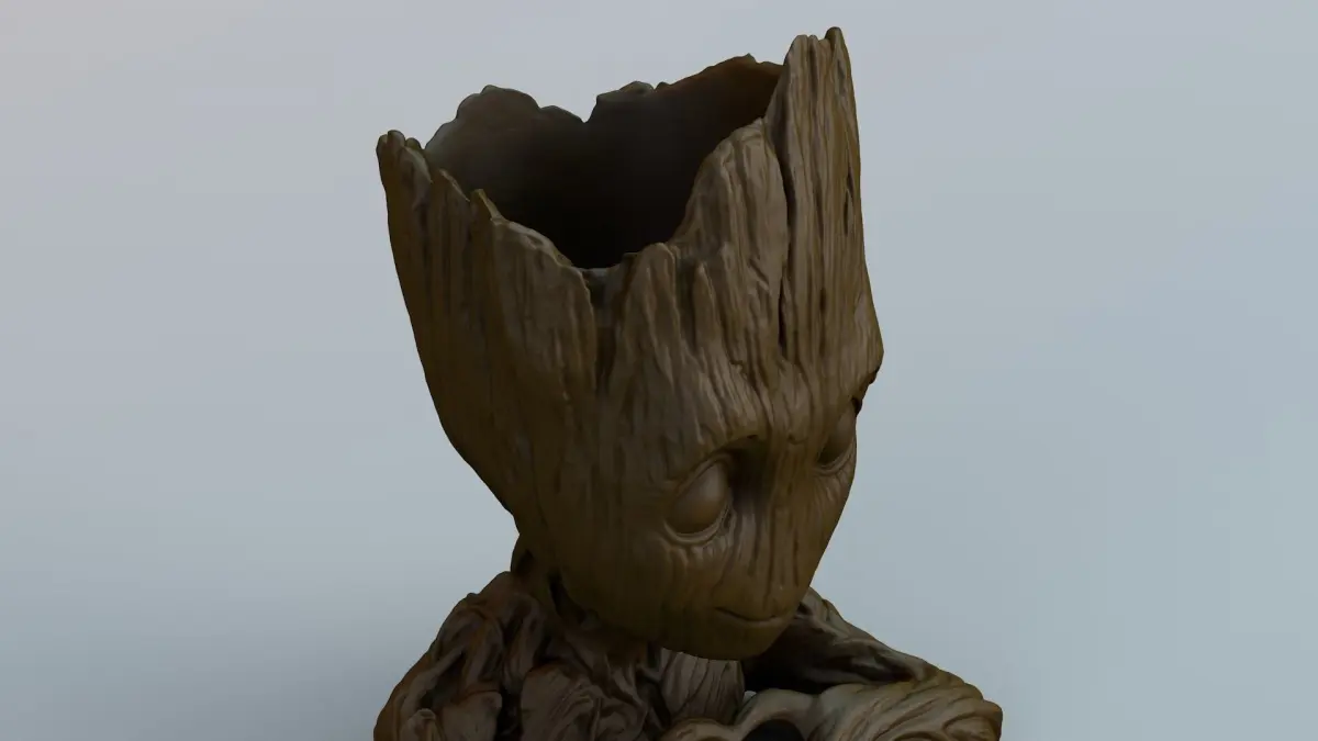 Baby groot in flower-pot mode for 3d printing.This model can be used as decoration, vase, form. Prepared for 3D printing on an fdm or resin printer.