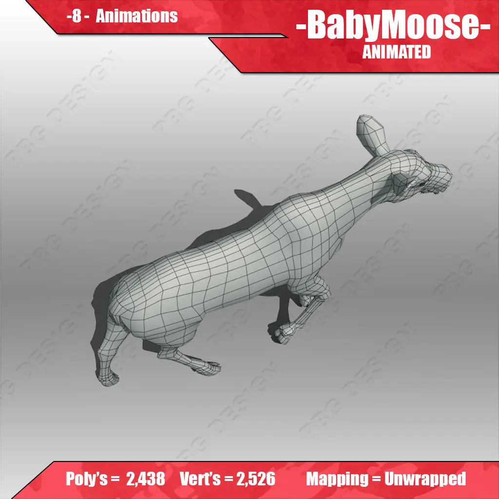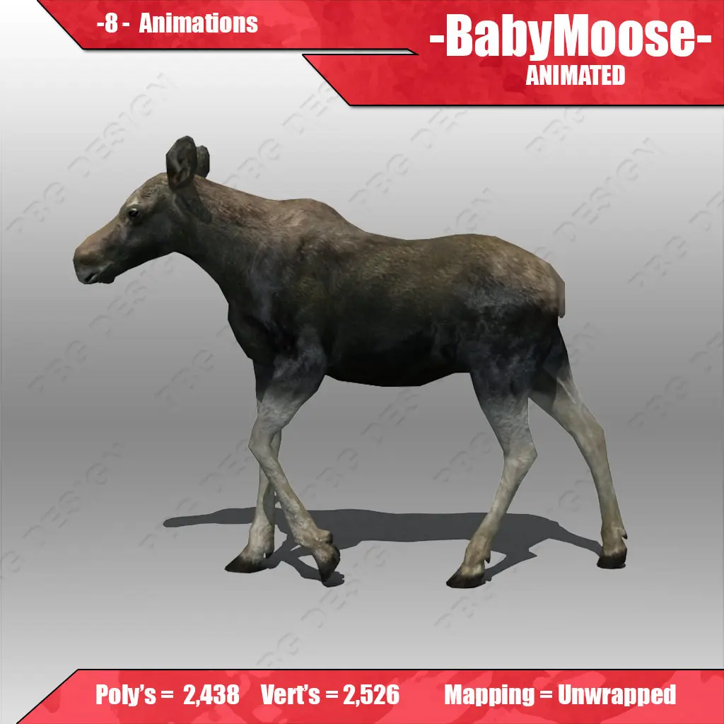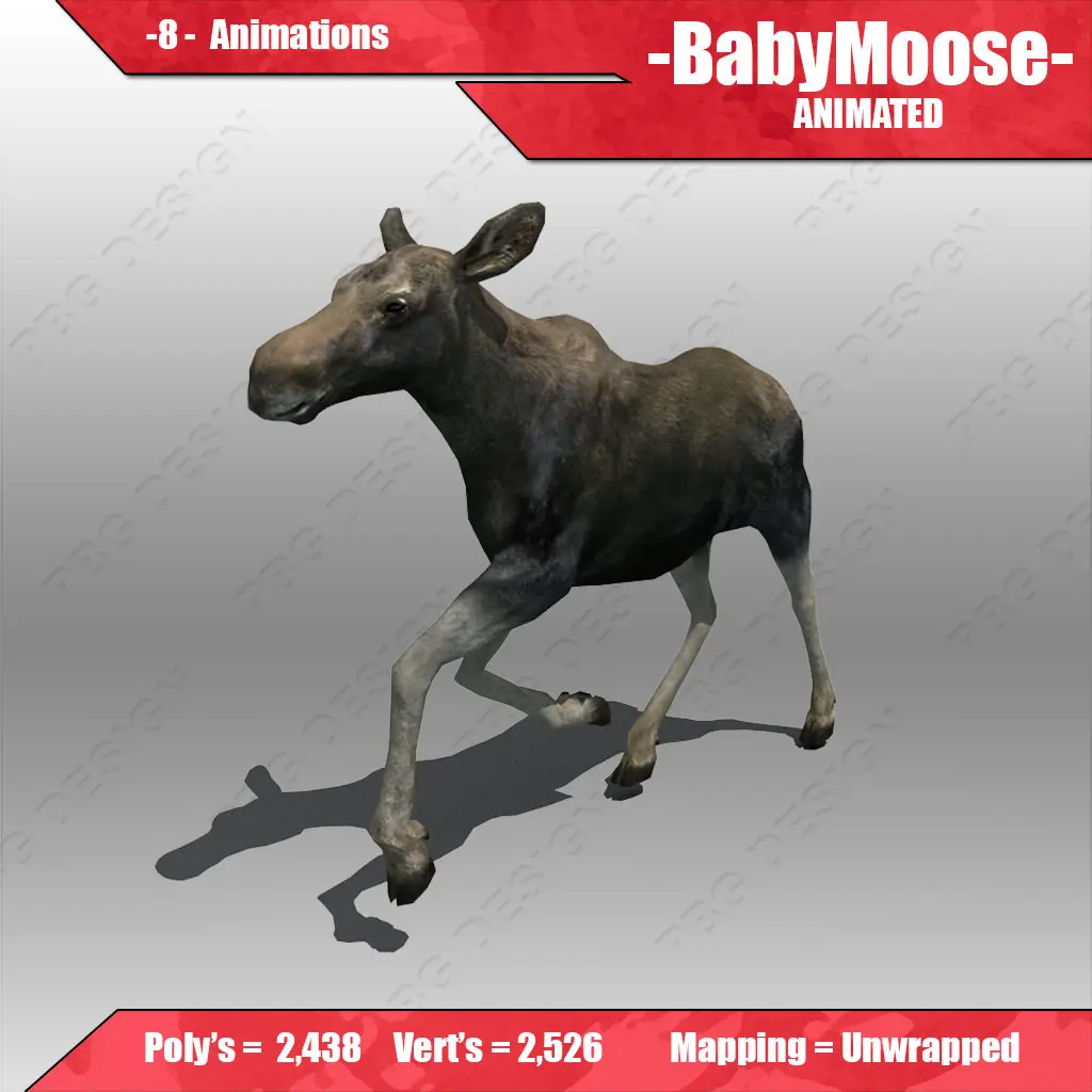 Baby Moose A low poly model of a Baby Moose fully rigged and textures. Has facial bones to control lips, braw and eyelids. Great for games and animations.