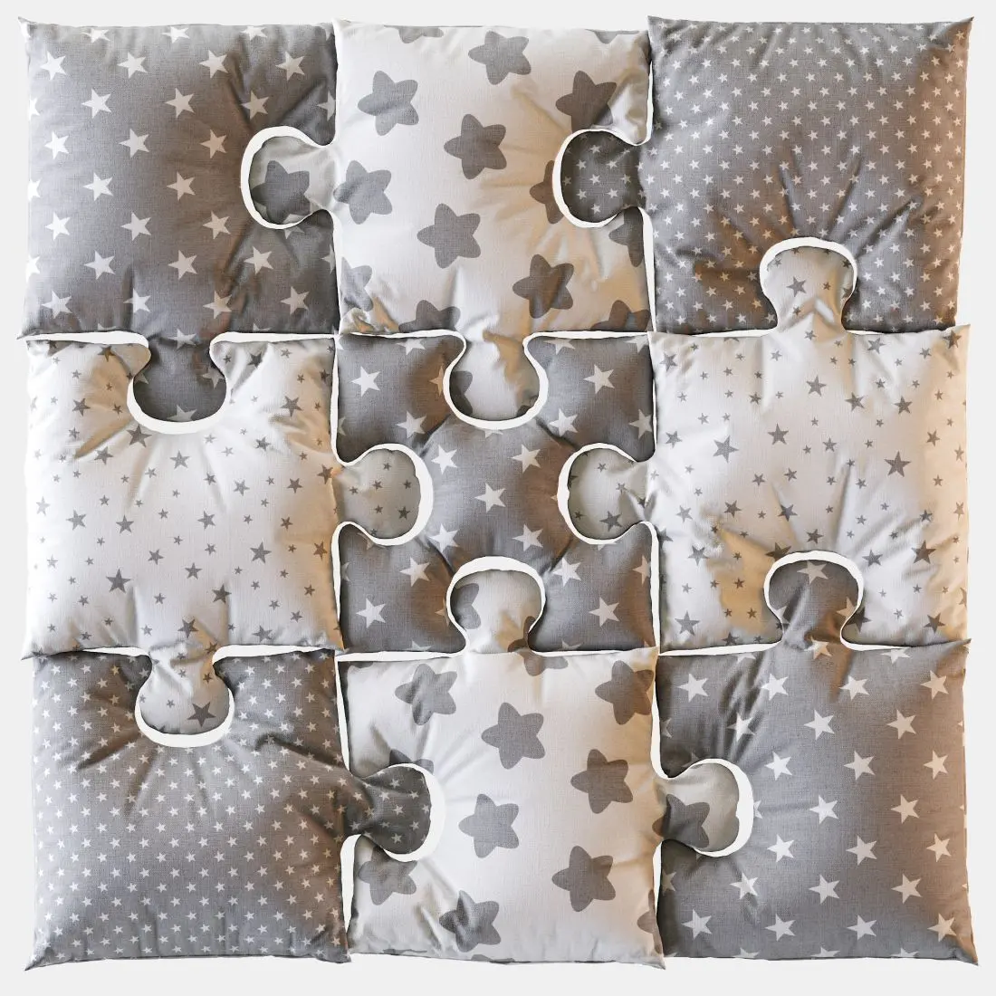 HandmadeMaterials: CottonLength: 32 inchesWidth: 32 inchesBaby Playmat with Star!! Not for tummy time !!If you want to protect your child against unsuccessful acquaintance with the adamant world around and against bruises after the fall , we recommend you to buy this PUZZLE play mat for your sweet baby.