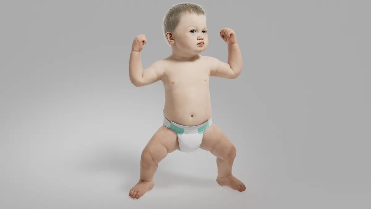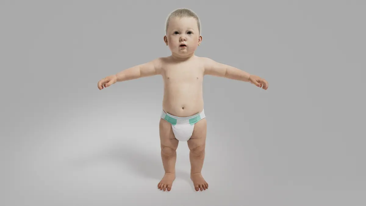 This Baby is a high quality model. The model has a fully textured design that allows for close-up renders, and was originally modeled in Maya 2022 and rendered with Arnold.
