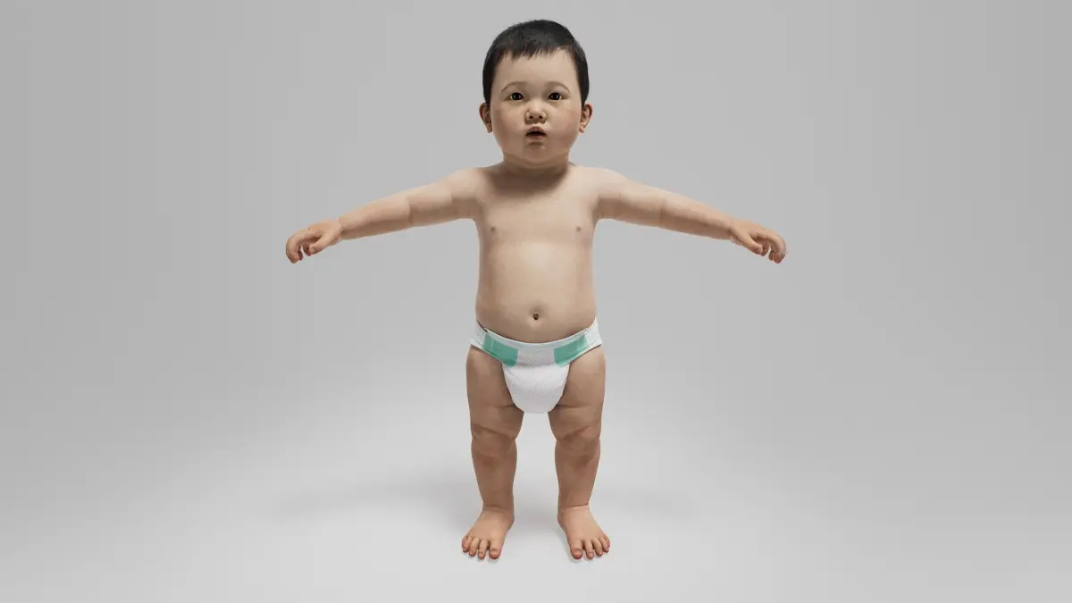 This Baby is a high quality model. The model has a fully textured design that allows for close-up renders, and was originally modeled in Maya 2022 and rendered with Arnold.