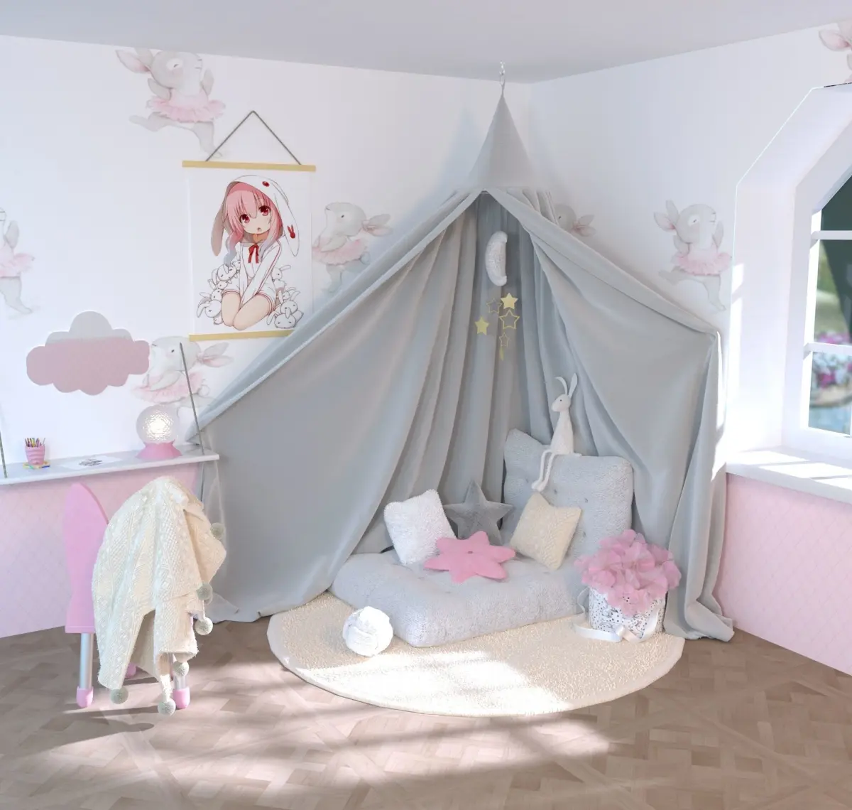 High poly scene of children's soft corner.Programs in which the scene was created: 3Ds Max, Marvelous Designer, Mudbox