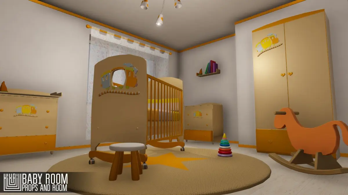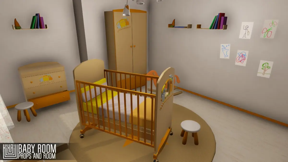 Mixaill studio presents a good solution for your games, VR projects and simulators. Baby room will help you save time on the implementation of your ideas. Pack includes a large set of necessary models: roomwindowdoorchildren's bedchairsoft matcupboardchandeliersoft toy “Carrot”changing boardchest of drawersplastic toy “Pyramid”toy shelfAll textures PBR. We really hope that we can help you, also if you have any questions and wishes please write: Mixaill(dog)gmail.com