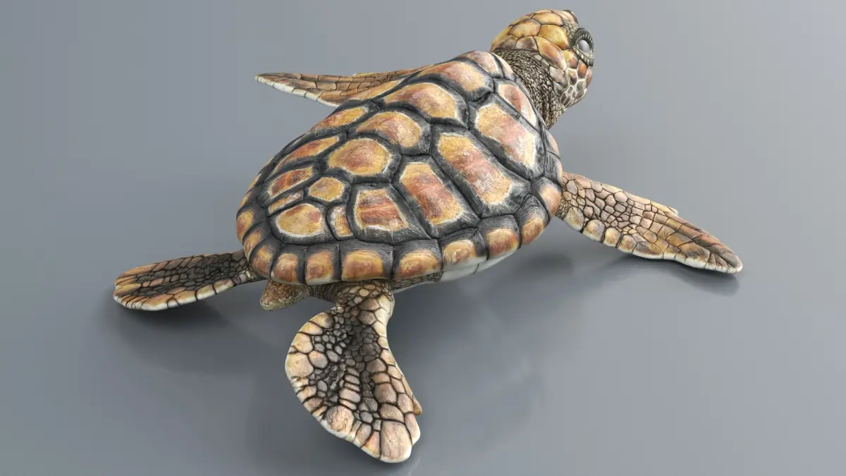 This model showcases the turtle's distinctive shell patterns and textures with lifelike colors, providing an authentic representation.