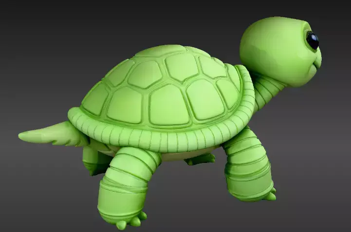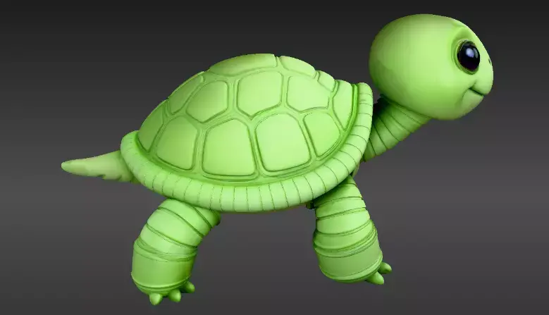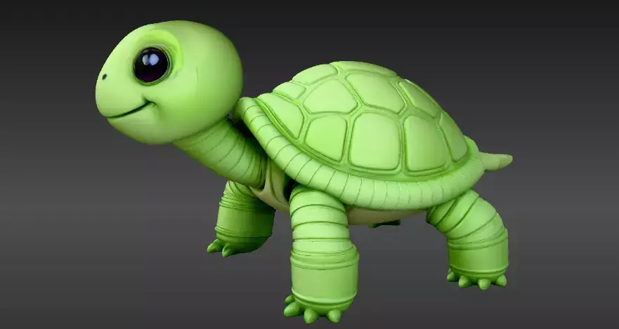 Cute baby turtle articulated flexi model featuring rounded shell plates, chubby legs, smiling face, and flexible body segments. Supportless print design with smooth . Includes option, STL. FBX/GLB/OBJ