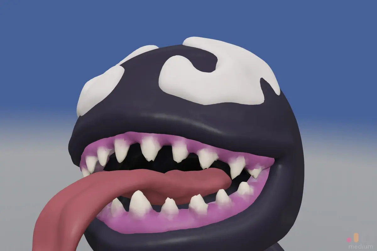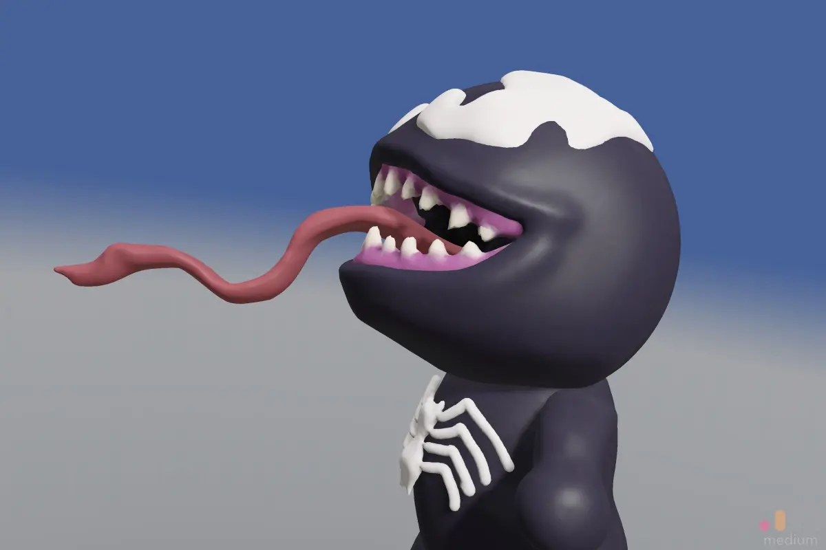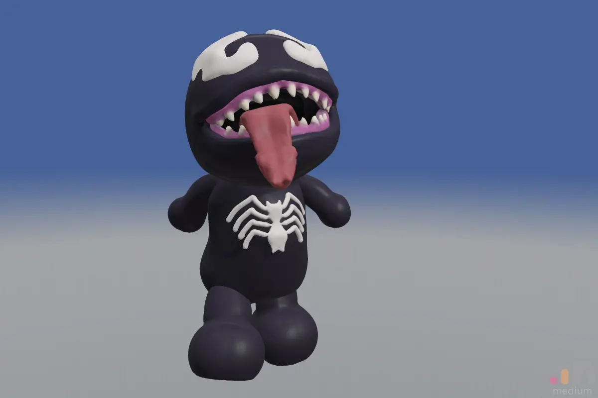 An improved version of my Baby Venom. The head, long tongue, eyes, arms and legs, are now separate elements so you can pose them in software like Blender.