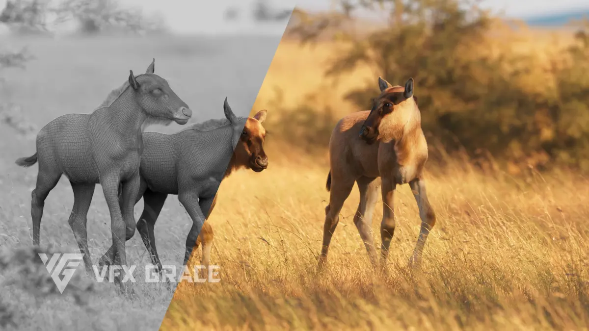 This is a baby wildebeest model with 4K maps, fur, rigging and animations. It's made with Blender and Cycles renderer.