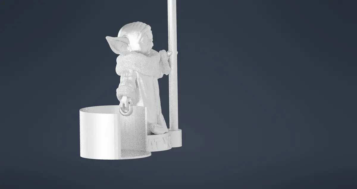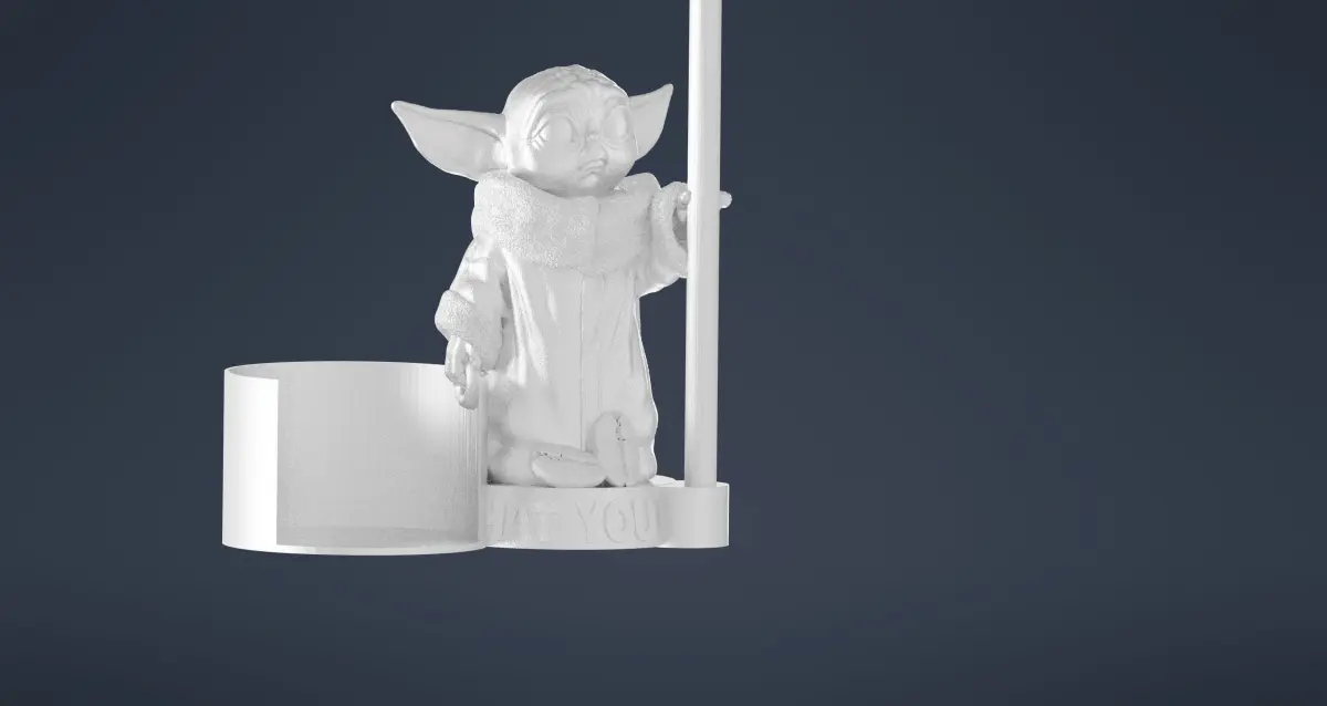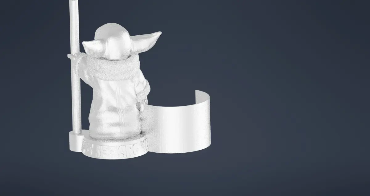 Baby Yoda Holding Coffee Filters designed for easy 3D printing. Also known as Grogu from the Mandalorian TV Show, as described below:
